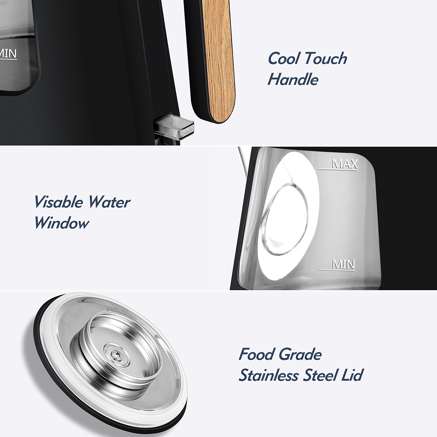 - Higher Safety - With the advanced thermostat controller, the hot water kettle has a built-in auto shut-off and boil-dry protection technology, the electric water kettle will shut off automatically when the water is fully boiled or there is no water inside.