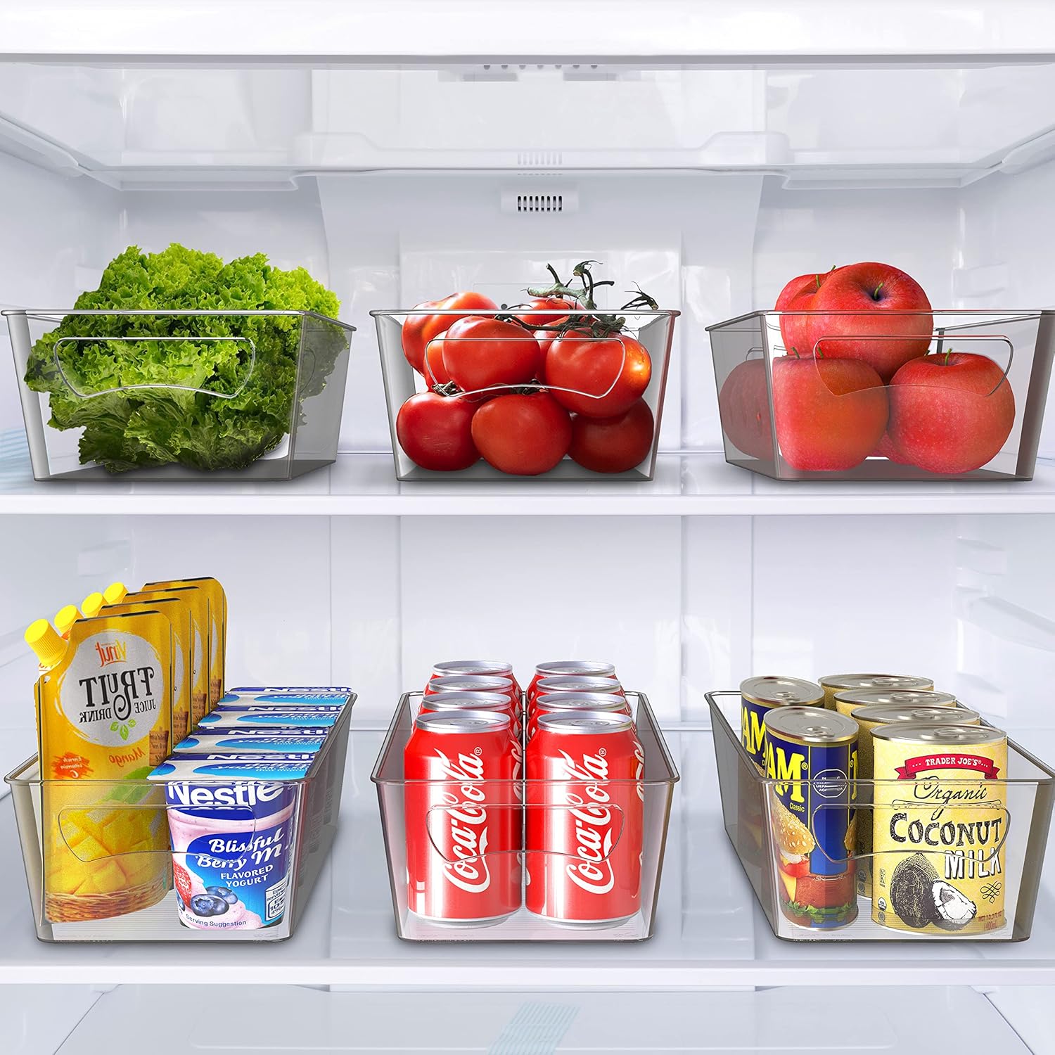 - No more fridge Jenga - crystal-clear organization see exactly what you have at a glance, these assorted sizes let you maximize space and create designated spots for everything, from fruits and veggies to condiments, dressing, soda can, packaged food and snacks.
