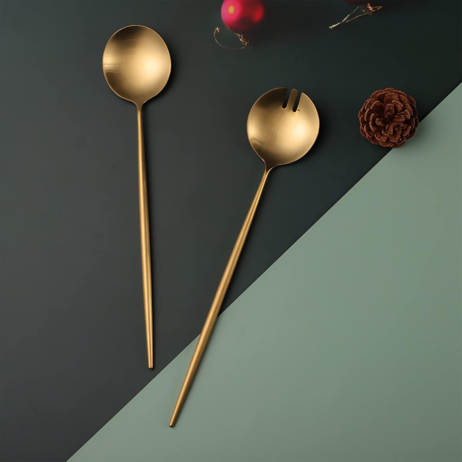 Salad Servers,Spoon and Fork Set 11.41 inch,18/10 Stainless Steel Salad Serving Titanium Plating (Gold)