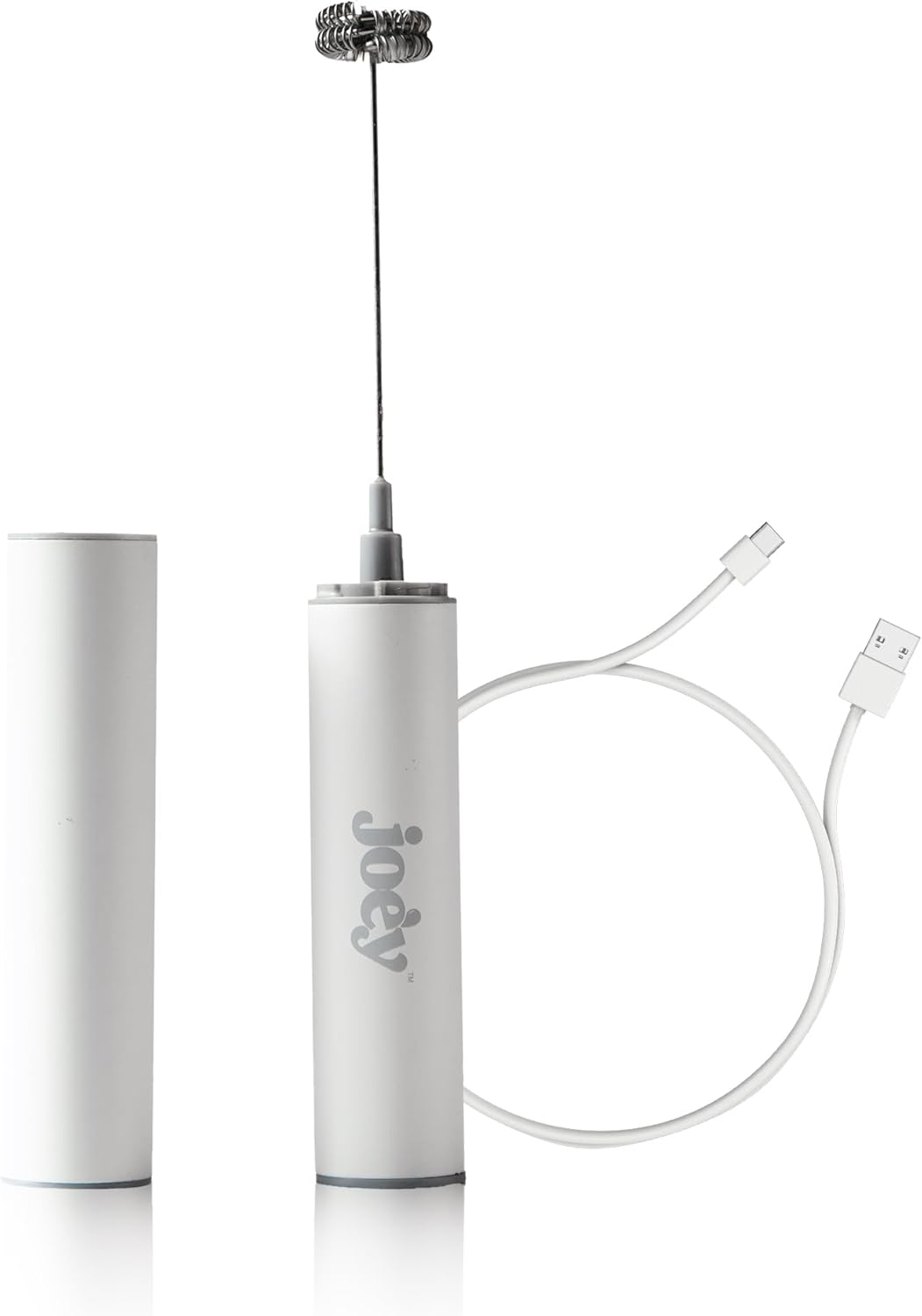 Joe’y High-Grade Milk Frother, USB-Powered Handheld Whisk for Coffee, Lattes, Matcha, Hot Chocolate, Dual-Speed Stainless Steel Frothing Wand with Travel Case, Double-Whisk, White