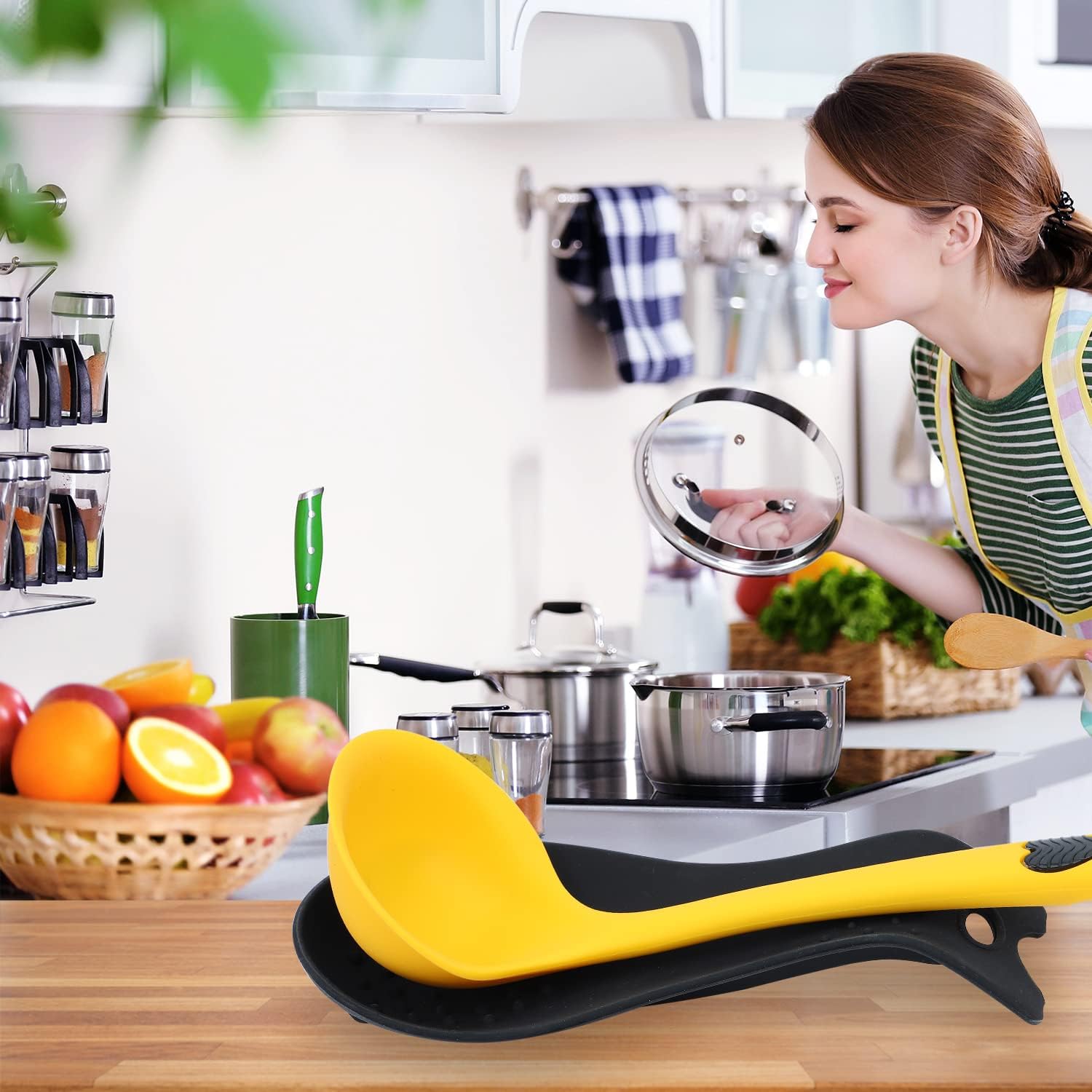 - The spoon holder are made of 100% food standard silicone, heat resistant up to 550 degrees F, dish washer safe