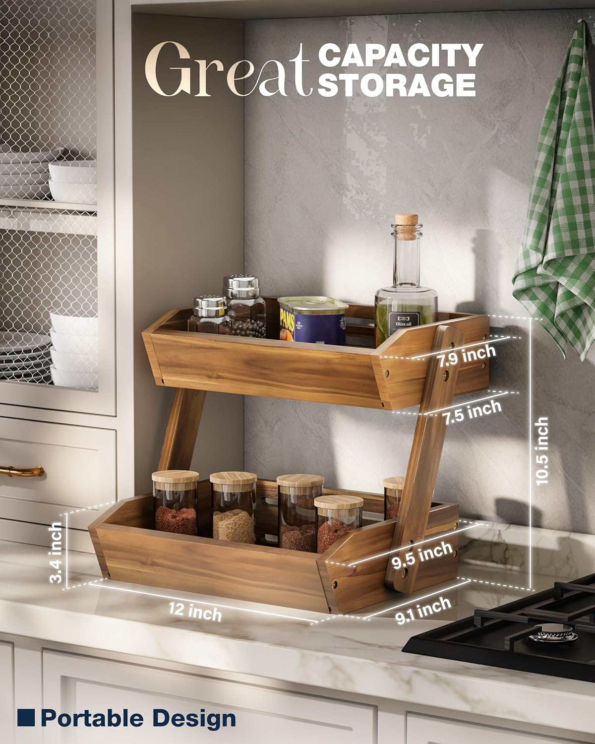 - ✔️ NECESSITY FOR ORGANIZATION: In addition to produce, snacks, bread, pastries, and seasonings, this 2-tier basket can also be used for bathroom toiletries, household products, pantry storage, and more!