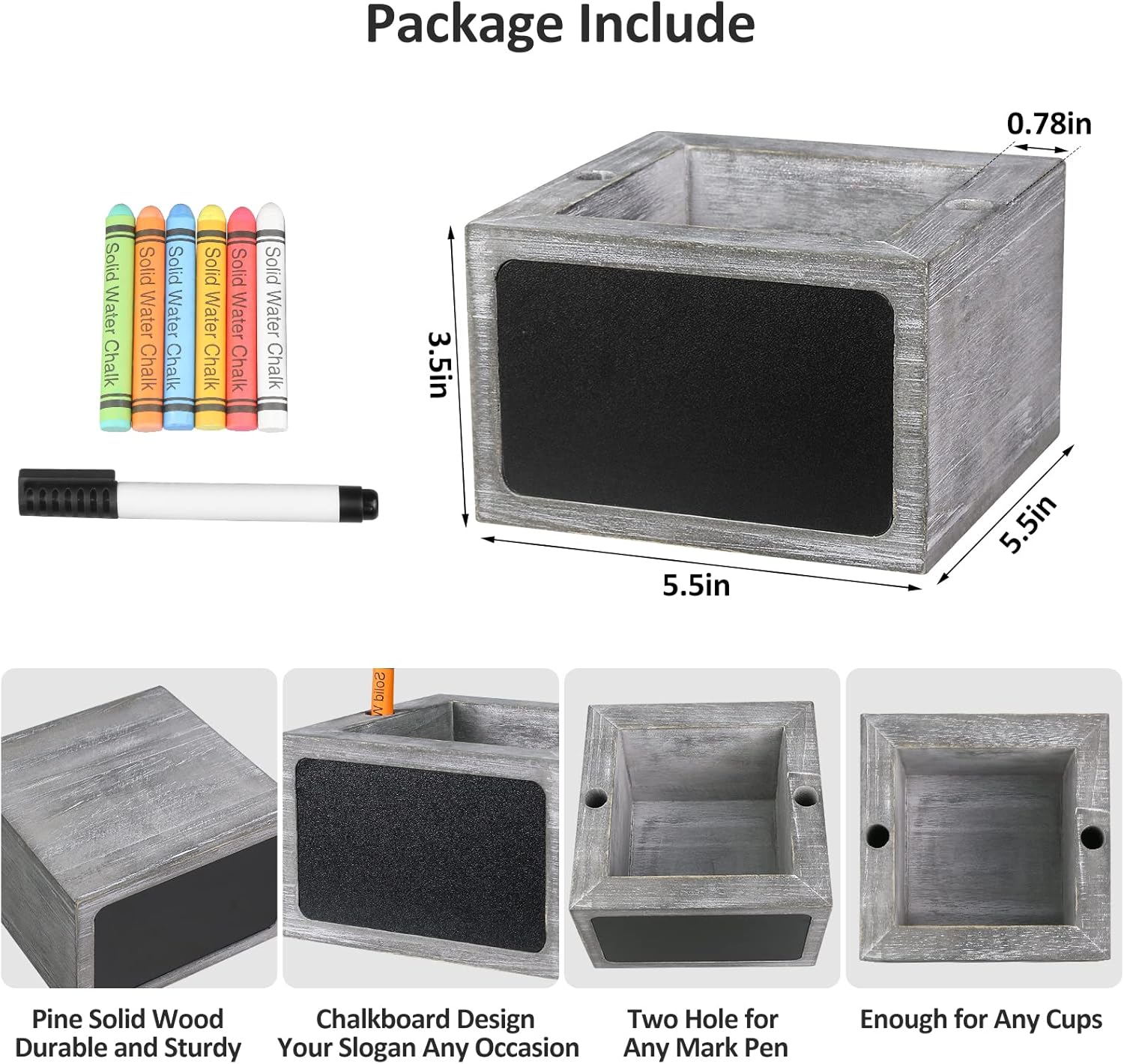 Wooden Cup Holder - Party Cup Holder with Marker Slot, with Chalkboard for Party and Wedding, Rustic Cup Holder for Countertop, Grey
