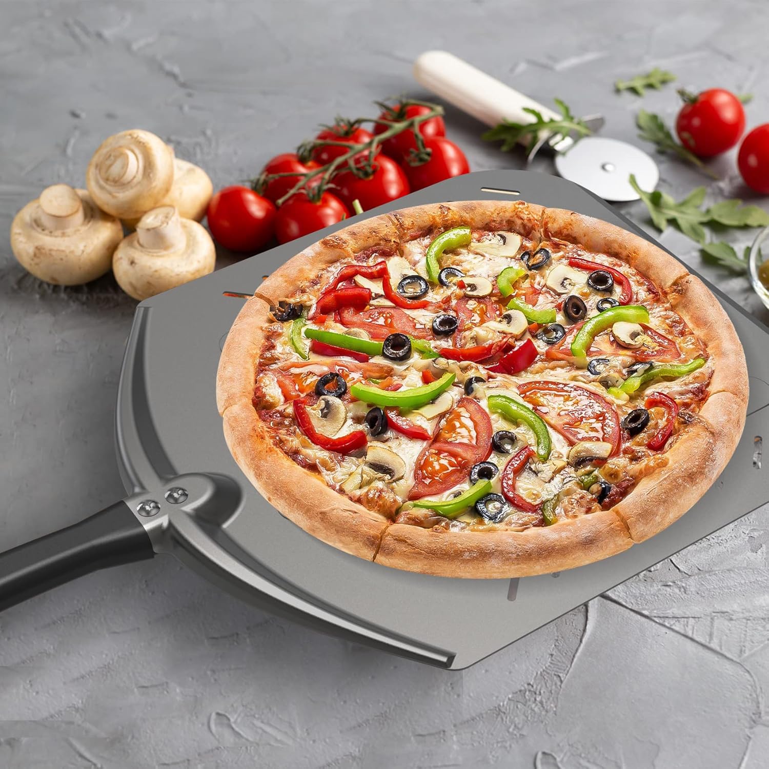 - 【Lightweight & Easy to Use】 Made of aluminum, it's thin and lightweight, simply sprinkle your pizza peel metal surface with a little corn flour for a non stick surface, you can slide your pizza off of your spatula and onto your plate without any stress.