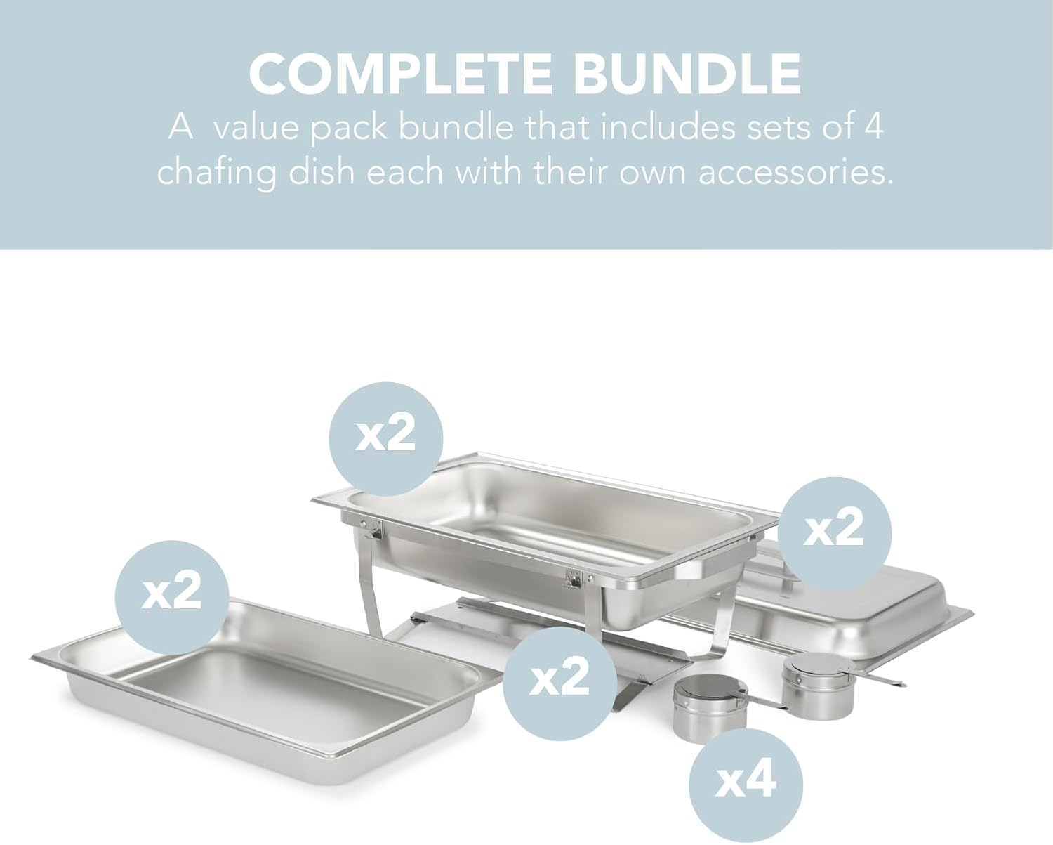 - ✓ CONVENIENT STRUCTURE - Each Chafing Dish comes with 2 Fuel Holders, Frame, a Full-Size Pan Tray, and Lid. The Chafing dish also has handles to ensure that the product can be moved with ease.