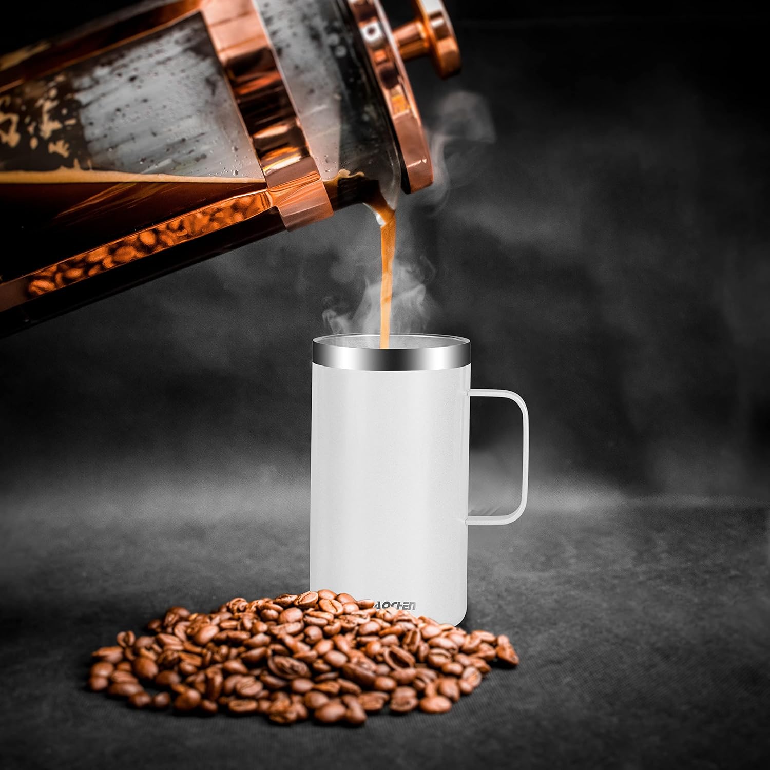 - INSULATED COFFEE MUG WITH HANDLE: 20oz coffee cup is large enough for heavy coffee lover at work, and also can be in beer gardens, home brews and the party. Insulated coffee mug with lid designed to keep your favorite hot, cold and carbonated beverages at the perfect temperature on the go.