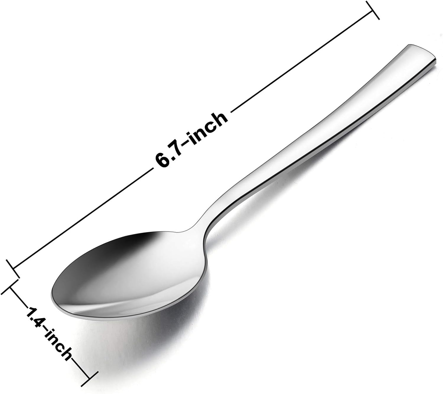 Teaspoon Set of 6, E-far 6.7 Inch Stainless Steel Spoons for Kitchen or Restaurant, Non-toxic & Mirror Polished, Squared Edge & Dishwasher Safe