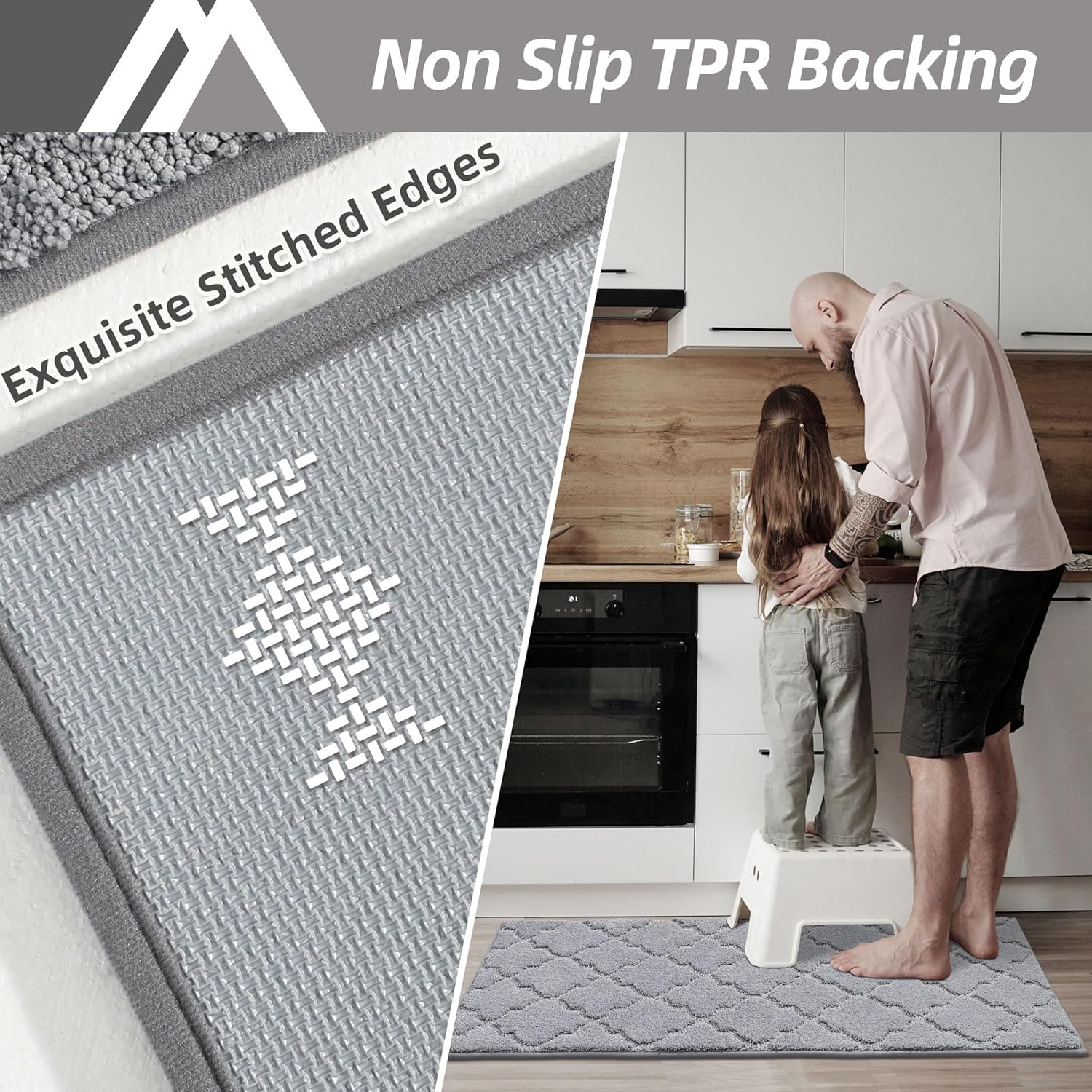 COSY HOMEER Soft Kitchen Floor Mats for in Front of Sink Super Absorbent Rugs and 20"x59" Non-Skid Mat Standing Washable,Polyester,Grey