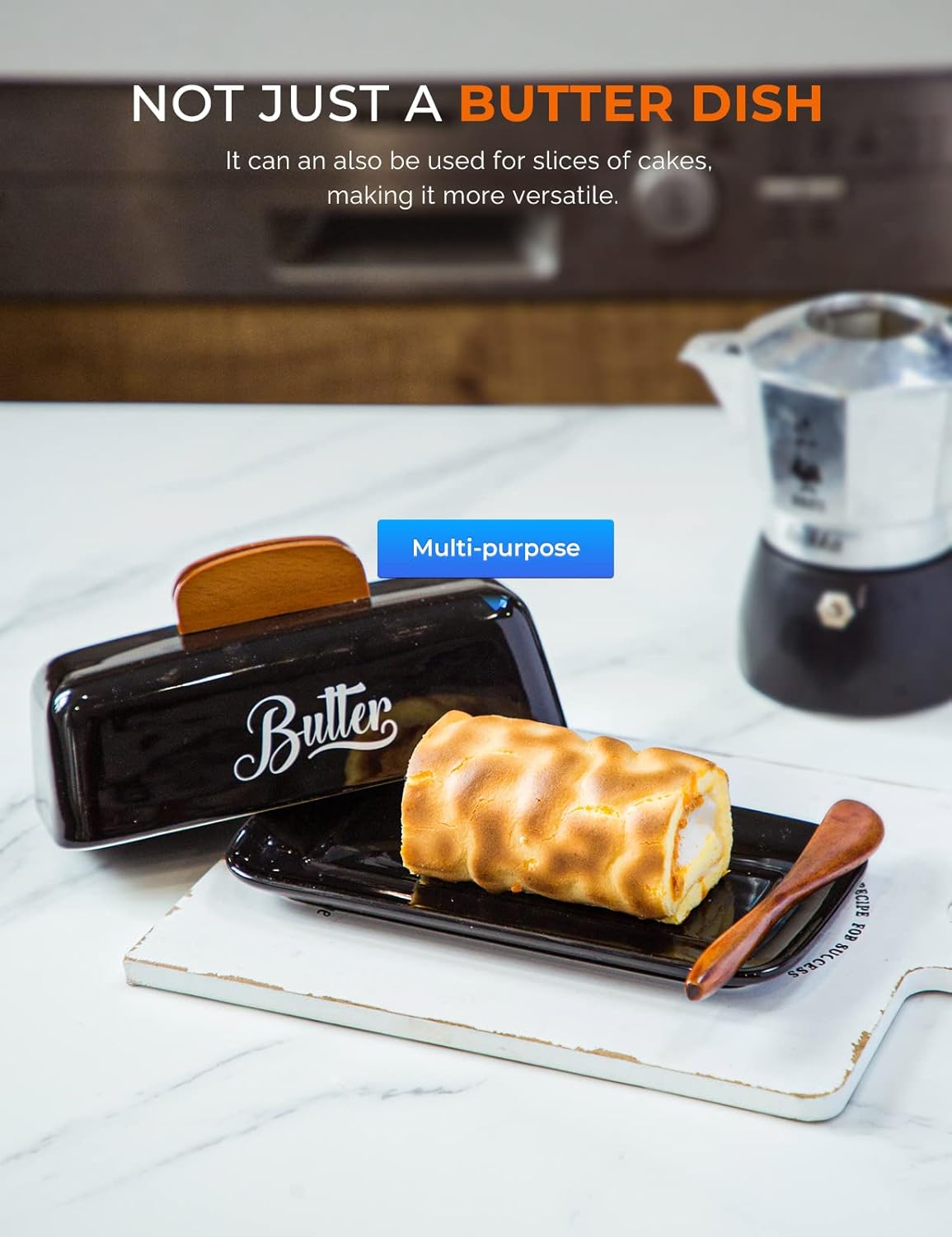 - 【A UNIQUE GIFT】: This butter dish with lid and knife is a blend of nature and simplicity, with the word "Butter" in a beautiful font, it can match any kitchen style, making it perfect as a countertop decoration or as a gift, bringing elegance and well-being to you and your loved ones.