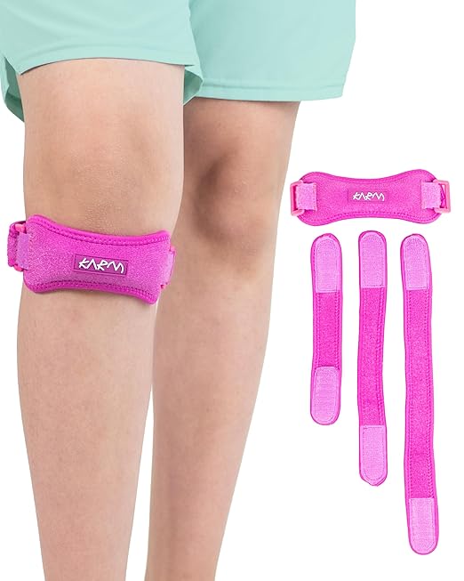 KARM Kids Knee Brace Strap - Osgood Schlatter Knee Brace Youth for Kids, Child - Patellar Tendon Support Patella Band for Pain, Sports, Basketball with 3 Length Adjustable Straps (Single, Pink)