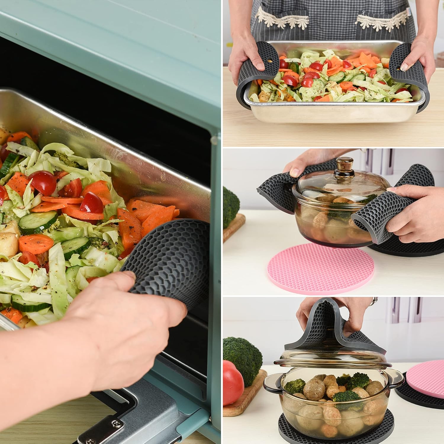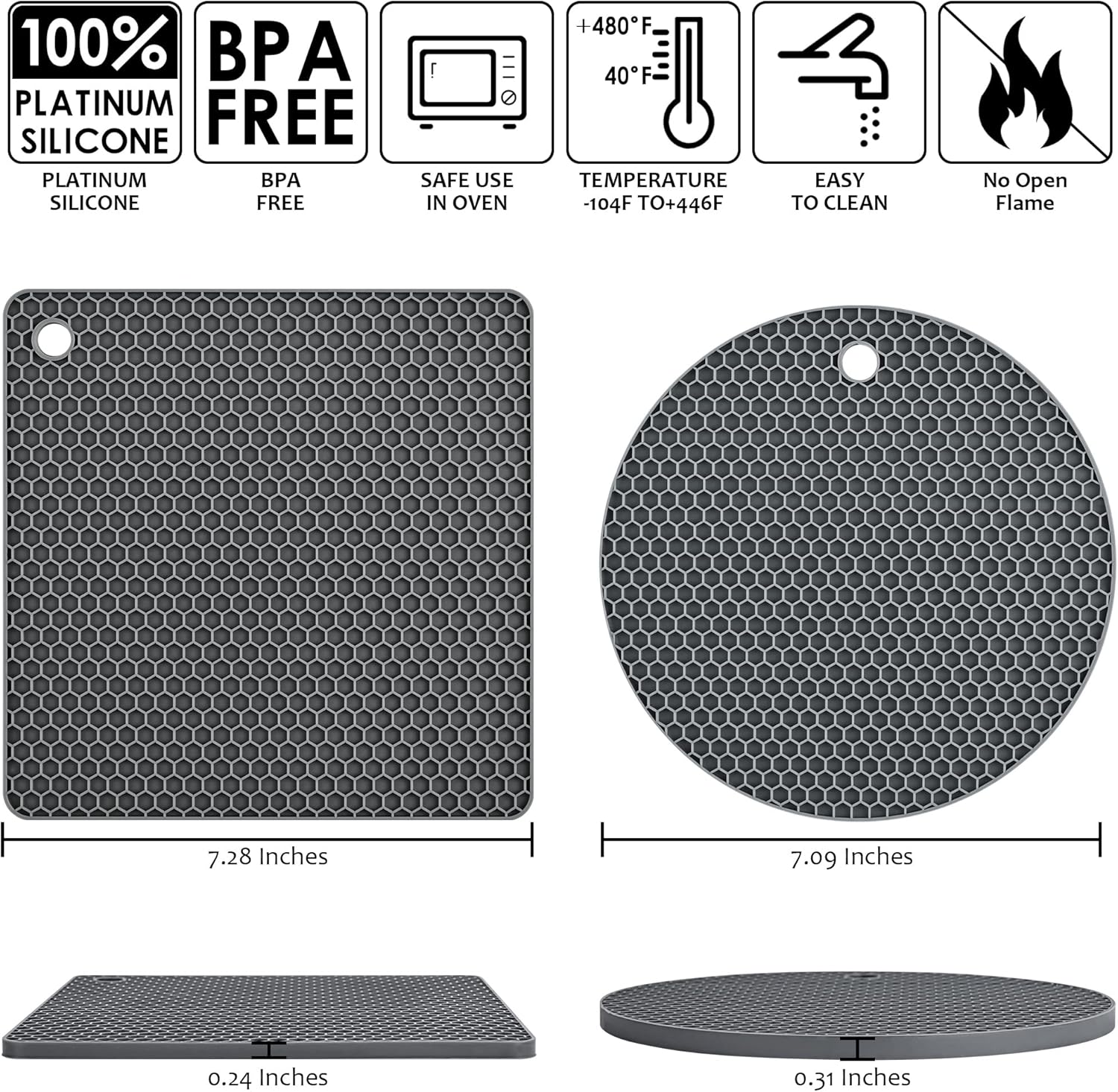 Silicone Trivets for Hot Dishes, Trivet Mat Hot Pads for Kitchen, Silicone Pot Holders for Kitchen, Trivets for Hot Pots and Pans, Heat Resistant Mats for Quartz Countertops, Set 4 Dark Gray