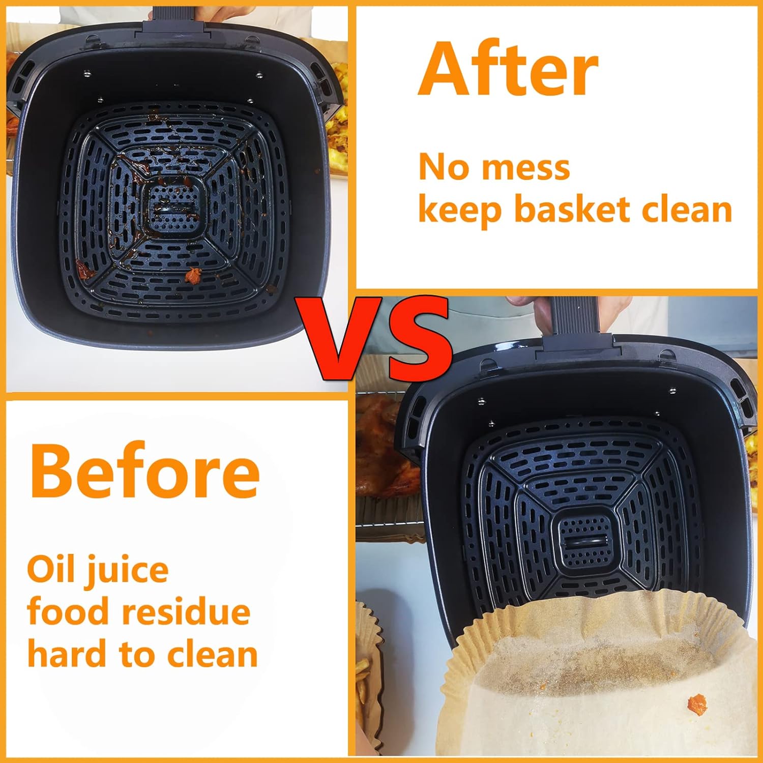 - 【Keep the air fryer clean]】:Use AILIFEER disposable paper lining, say goodbye to the trouble of filling the pan with oil, no oil leakage design, the bottom of the pan does not drip after cooking and baking, and it is as clean as unused, The high rim prevents food from sticking to the fryer, just throw away the parchment paper liner of the air fryer after use, no need to clean the fryer, save time, and make your meal more enjoyable