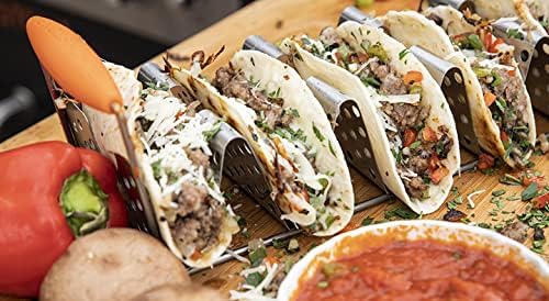 - No more mess- If you have trouble assembling tacos while your attention is on something else in the kitchen, our taco rack set will help you keep everything together. It can store tacos in its sturdy steel molds till it's finally time to eat. The stand keeps the tacos upright, allowing you to add all your desired condiments.
