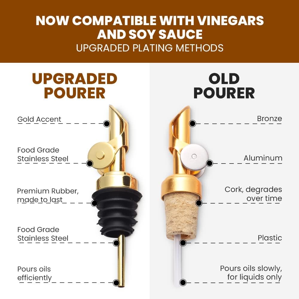 - PRECISION POURING: Featuring a unique Olive Oil Dispenser Spout, this Set ensures accurate dispensing. It is ideal for Kitchen Oil, Vinegar, or Syrup by keeping your countertops clean