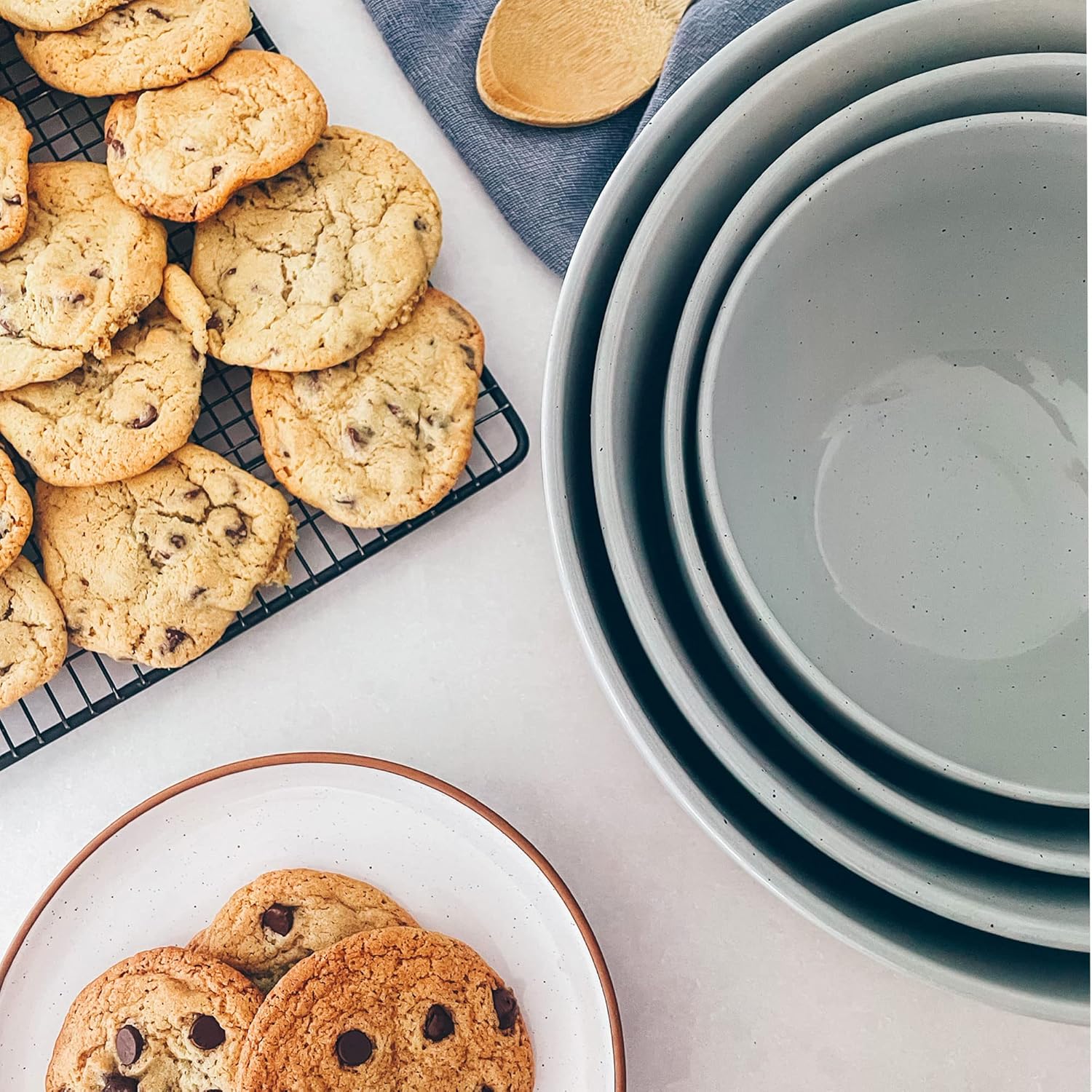 - STORAGE FRIENDLY NESTING: Our mixing bowls are designed with you in mind. Combine this set with our smaller set to get a beautiful set of four mixing bowls for every kitchen need. See pictures below.