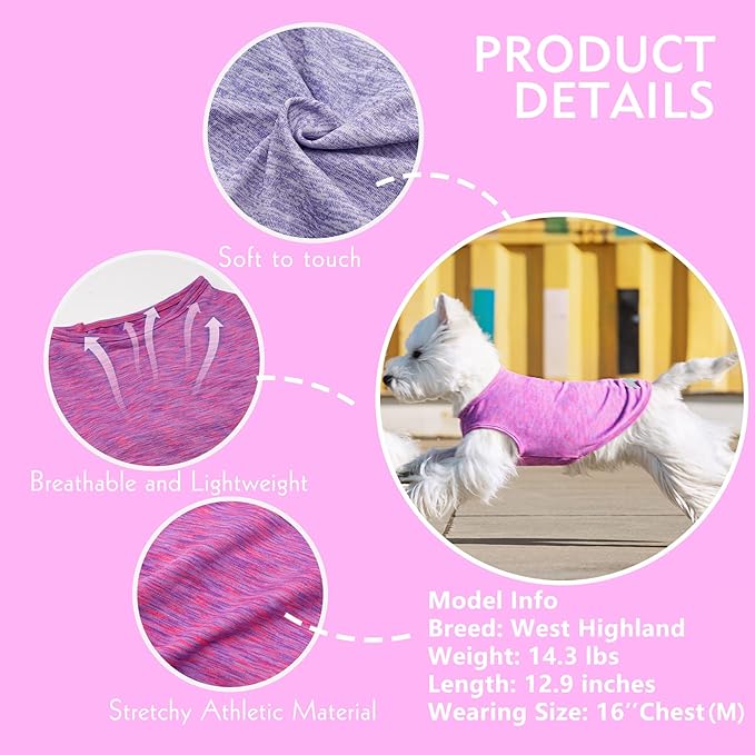 KYEESE 2 Pack Dog Shirts Quick Dry Soft Stretchy Pet T-Shirts with Reflective Label Tank Top Sleeveless Vest Sun Protection Dog Clothes for Small Medium Dogs, Small, Purple+Pink