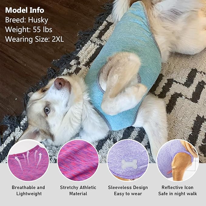 KYEESE 2 Pack Dog Shirts Quick Dry Soft Stretchy Pet T-Shirts with Reflective Label Tank Top Sun Protection Sleeveless Vest Dog Clothes for Small Medium Dogs, XX-Large, Purple+Pink