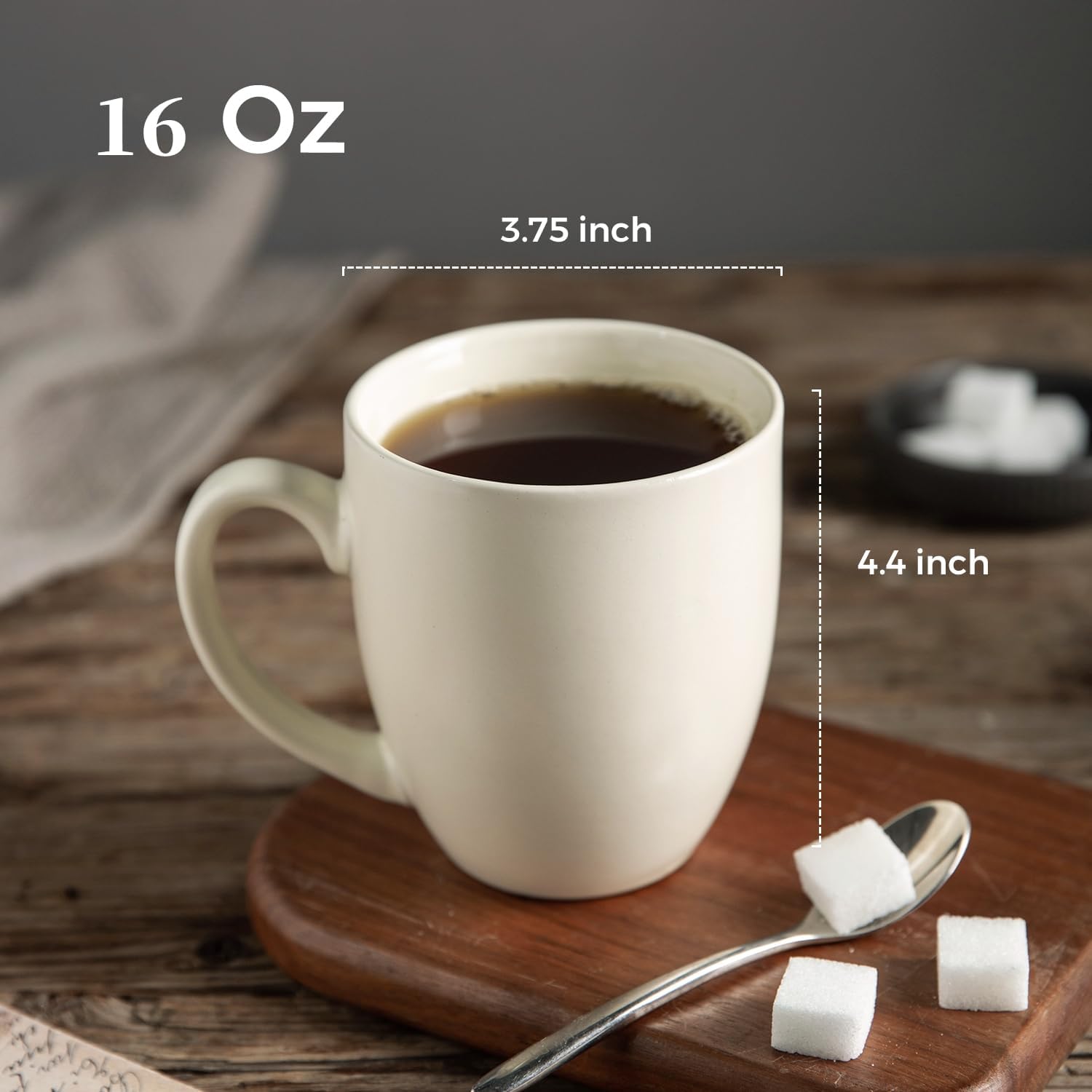- LARGE SIZE & CONVENIENT SET: With a capacity of 16oz, these mugs are the perfect size for everyday use at home or in the office. The set of 6 mugs is convenient for serving guests or for use throughout the day. These mugs are versatile and can be used for a variety of beverages such as coffee, tea, soup, milk, latte, cappuccinos, hot chocolate, cocoa, and more.