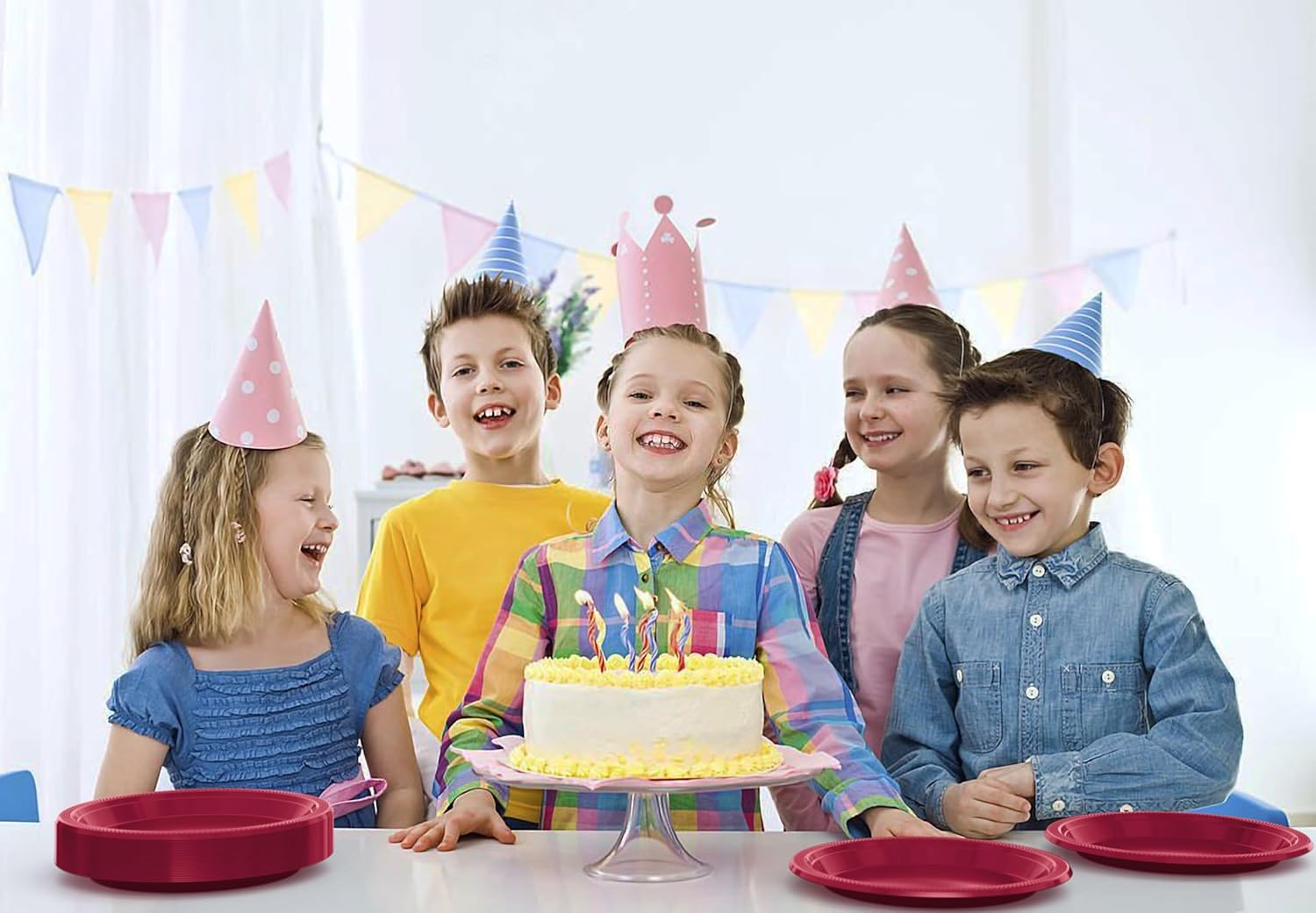 - Includes: Each pack comes with 100 Burgundy 9 inch dinner plates. These plates may be used as dinner plates or cake plate and also make a great use as picnic supplies. Having these will complete your plastic dinnerware collection.