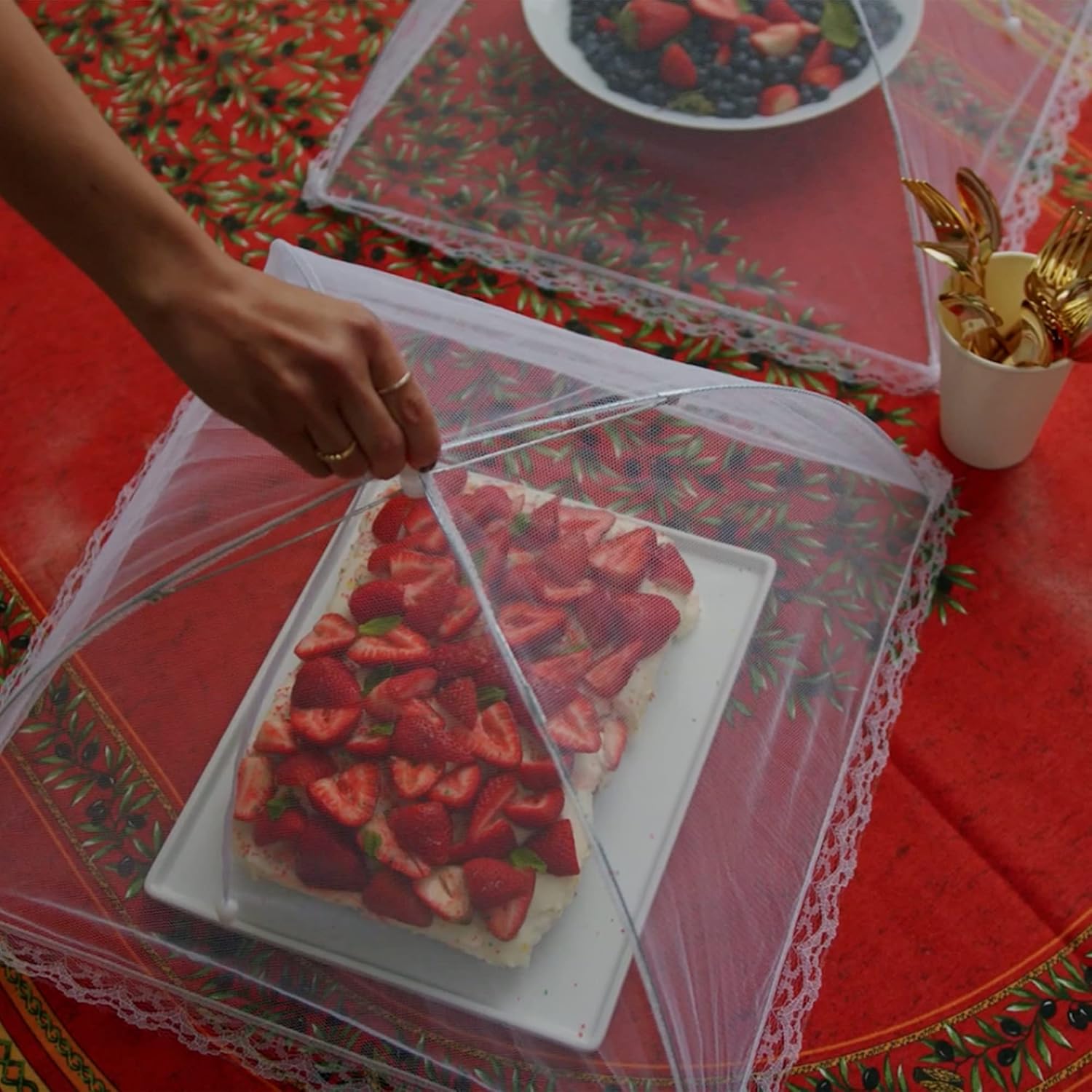 - Enhanced Bug Protection: Safeguard your dishes from unwanted disturbances with these fly covers for outdoor food, ensuring an enjoyable dining experience. These food nets for outdoors elevate your hosting essentials, providing peace of mind during any outdoor event