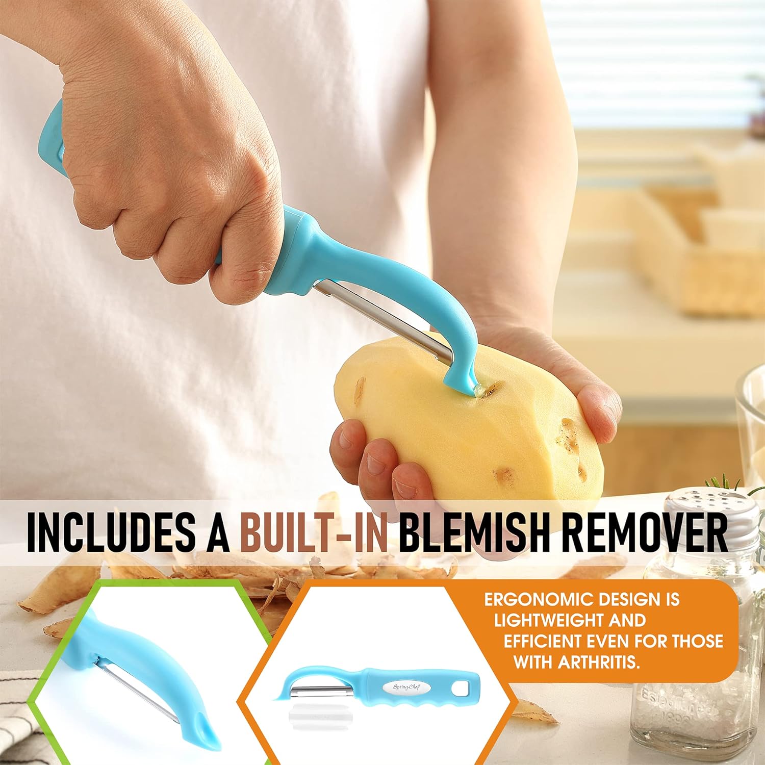 Spring Chef Premium Stainless Steel Vegetable Peeler for Kitchen, Dishwasher Safe Potato Peelers with Non-Slip Handle, Peel Apple, Fruit, Veggie, Carrot, Mango - Set of 2 - Aqua Sky