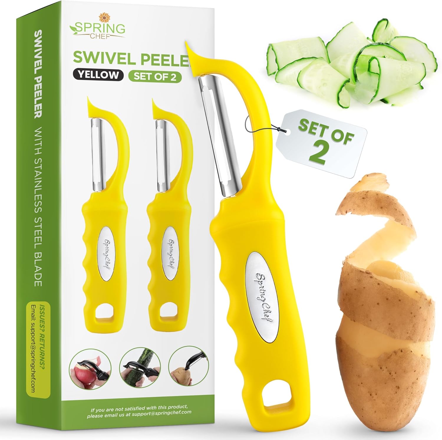 Spring Chef Premium Stainless Steel Yellow Swivel Potato Peelers for Kitchen, Dishwasher Safe Carrot Peeler with Comfortable Handle, Perfect for Vegetable, Fruit, Apple, Cucumber - Set of 2