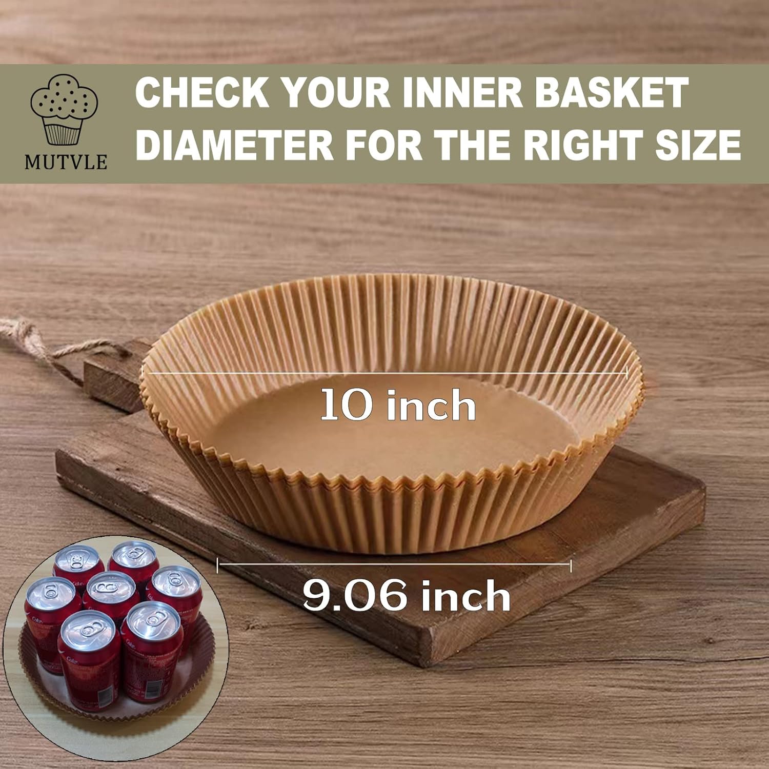 - 【Info】 XX-Large Size. 100 Pcs. Round Shape. Wide 10 inches (overall can max extend up to 12.2 inches), bottom wide 9.06 inches, high 1.8 inches, perfects for 7 quart or bigger air fryer use. PLEASE MEASURE YOUR AIR FRYER BASKET BOTTOM BEFORE PURCHASE!