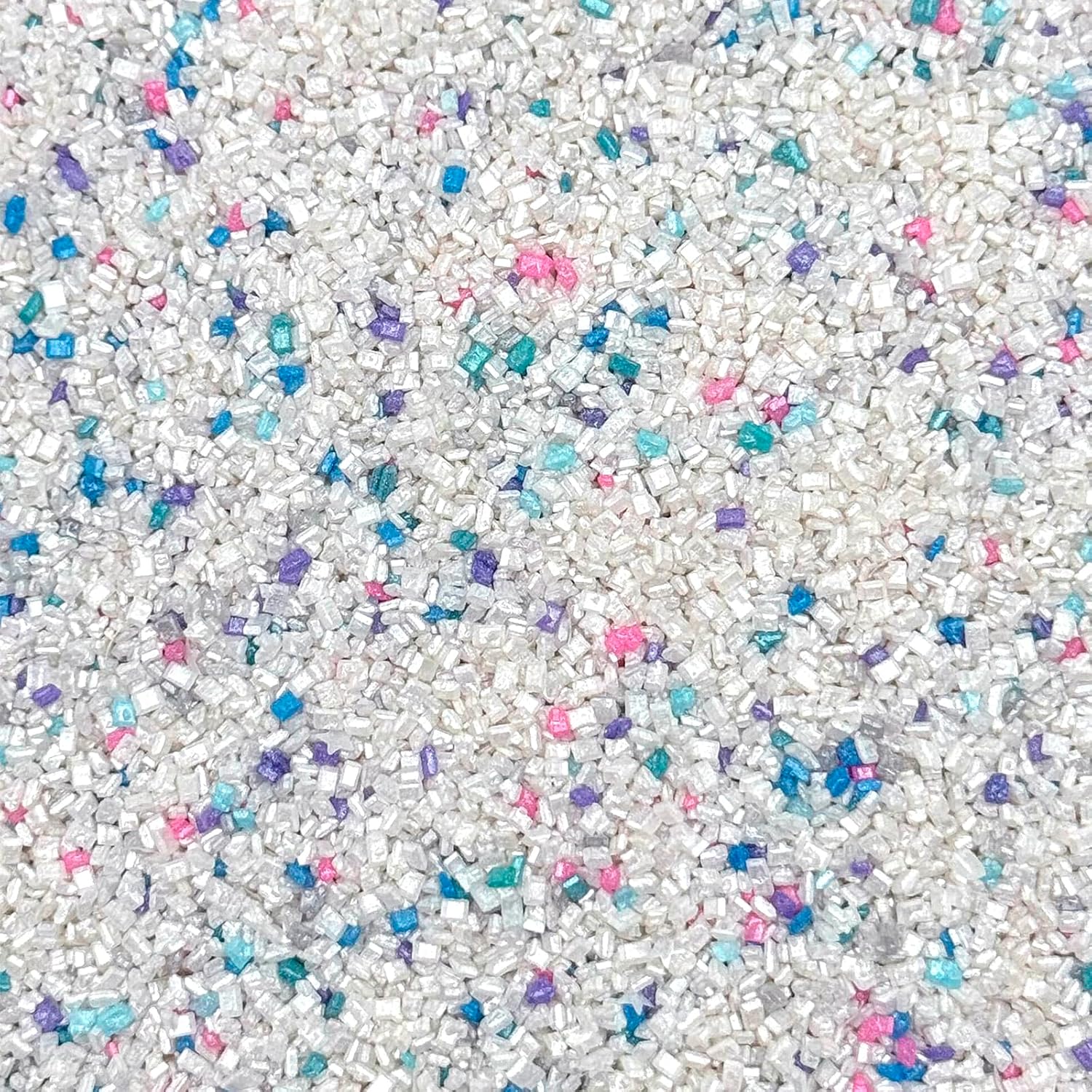 Fancy Sprinkles Unicorn Breath Fancy Sugar Pearlescent White Sugar Crystals Flecked with Blue, Purple, Pink, and Teal Sugars, and Silver Mini Edible Glitter Stars (4 OZ)