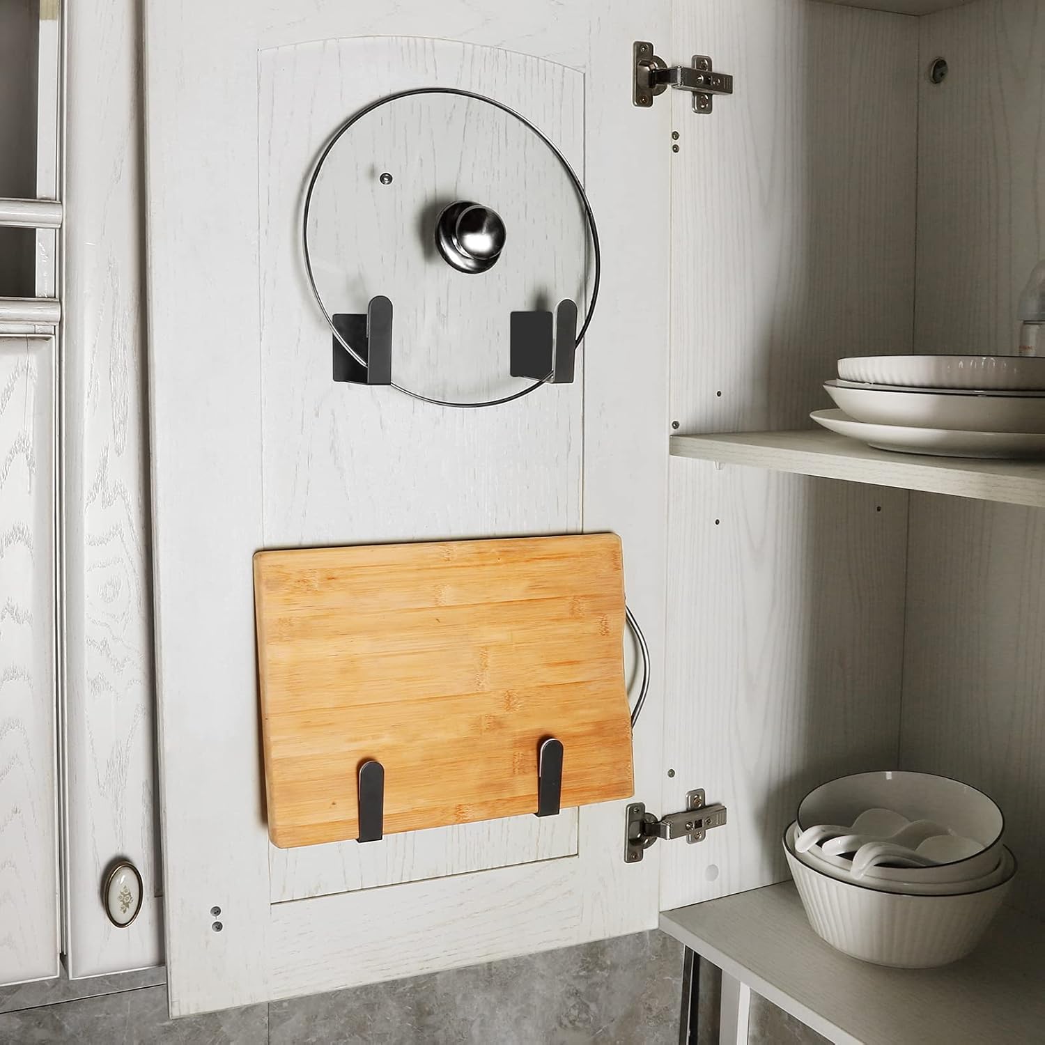 - 【Set of 8 Pieces】The set contains 8 brackets that you can combine into 4 complete lid racks for placing lids or cutting boards. Of course, a single stand can also act as a hook for hanging kitchen tools such as spatula and towels. Great savings in kitchen space.