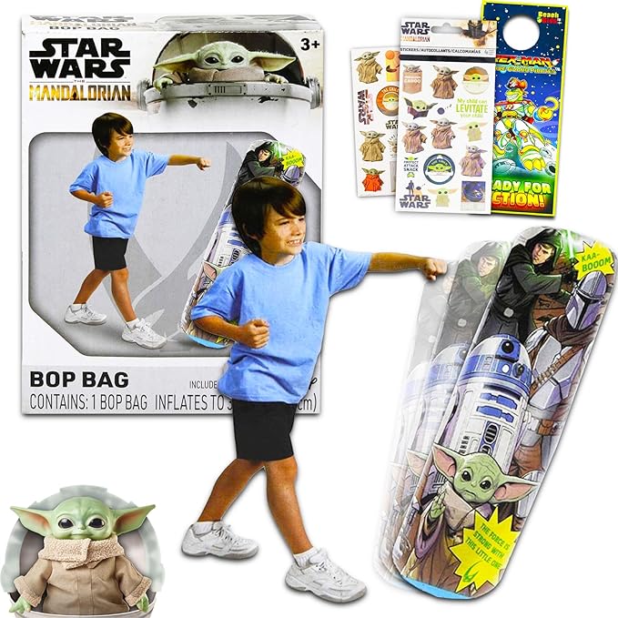 - Mandalorian Bop Bag for Kids - Star Wars Toy Bundle with Baby Yoda Punching Bag for Outdoor Play Plus Mandalorian Stickers and More (Mandalorian Punching Bag for Kids).