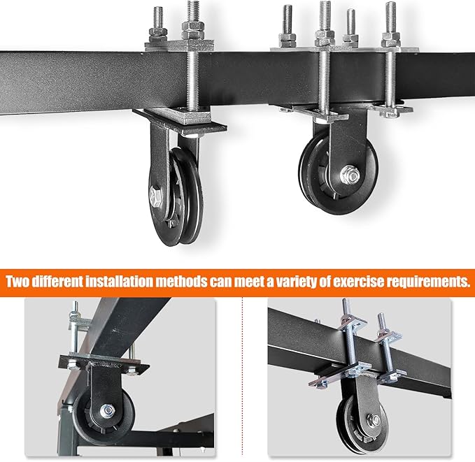 - 【Wide Application】The cable pulleys are widely used for wire rope traction, DIY attachment for home gym. You can fix it on the square tubes of different strength training power cages. These adjustable screws are suitable for square tube racks with a width of 1.6 inches to 3.3 inches. They are excellent attachments for the exercise machines.