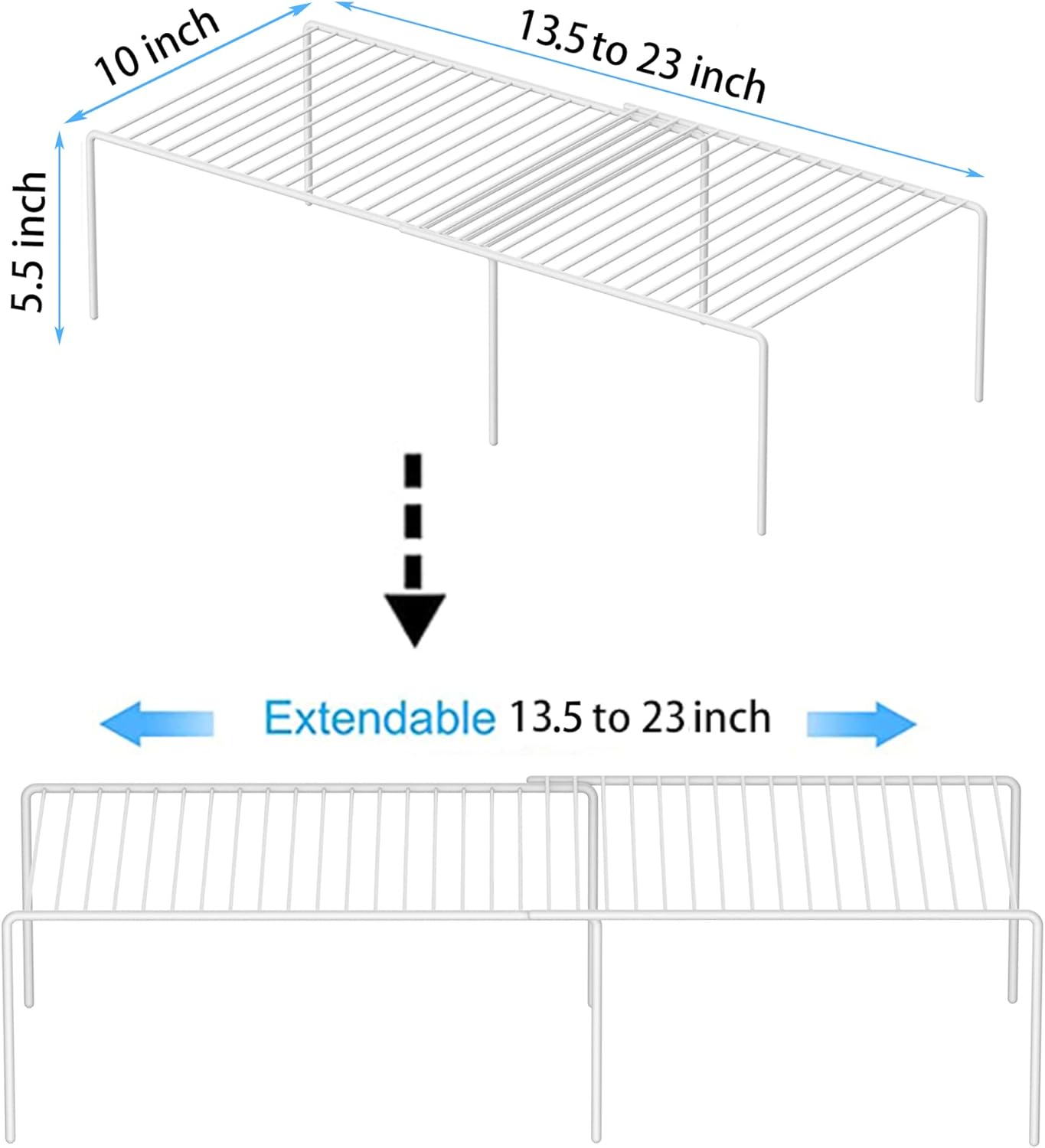 - EXPANDABLE DESIGN: The length of this shelf can be adjusted to your desire. It can vary from 13.5 inches to 23 inches in length depending on how you want to arrange your space. This product is tailor-made for customers who faces difficult product selections. Size:13.5 to 23 L x 9.4W x 5.5 H inch.