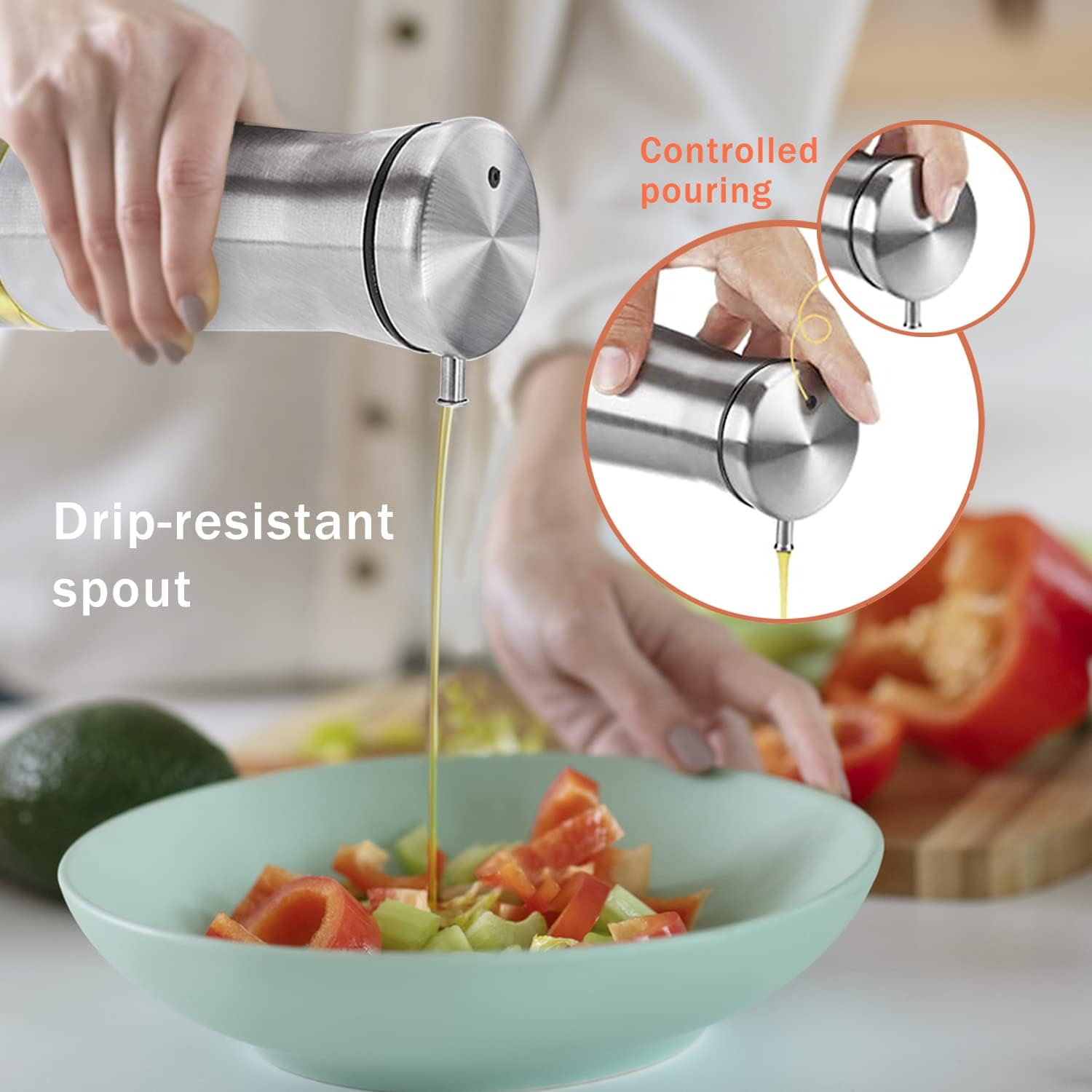 - Ideal Oil Container: The cooking oil dispenser bottle is suitable for olive oil, vinegar, soy sauce and juice. . . Suitable present for everyone, whether it’s family, friends, or housewarming.