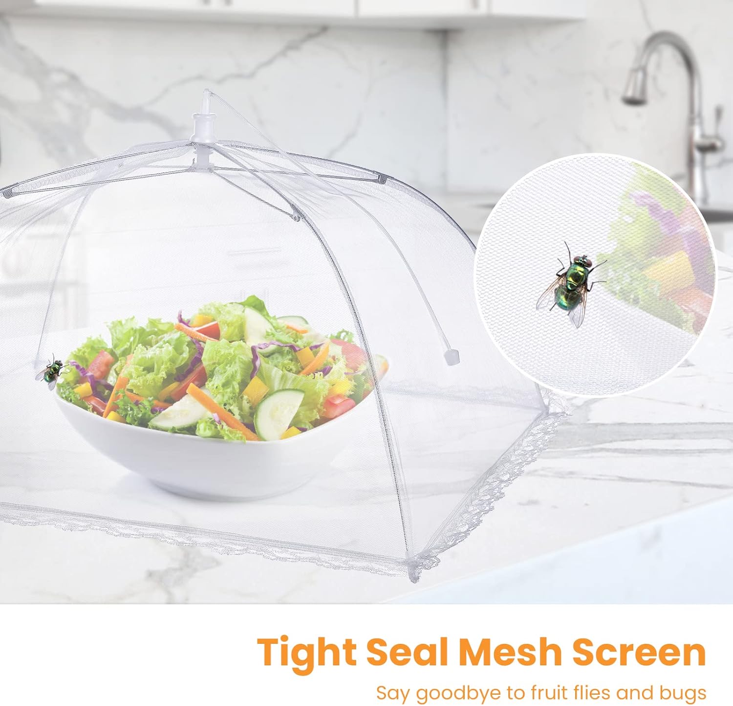 - ❤【Food Protection Covers】: Our picnic food covers mesh extra large are designed with denser mesh and wider skirts to allow your food breathe naturally and say goodbye to fruit flies and bugs. Metal skeleton, durable and rust-proof.