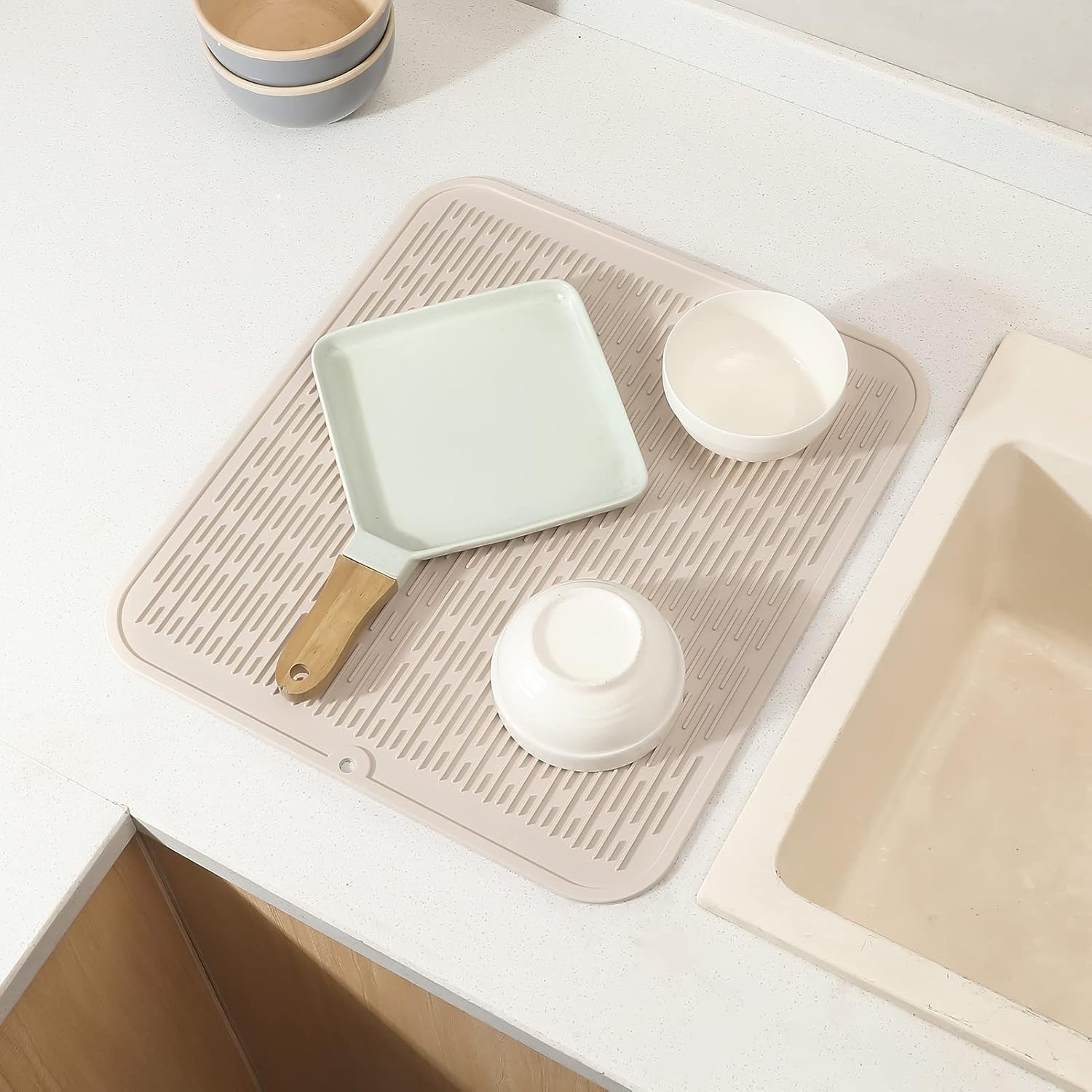 Silicone Dish Drying Mat for Multiple Usage,Easy clean,Eco-friendly,Heat-resistant Silicone Mat for Kitchen Counter or Sink,Refrigerator or Drawer Liner Tapioca XL 18 inches x 16 inches