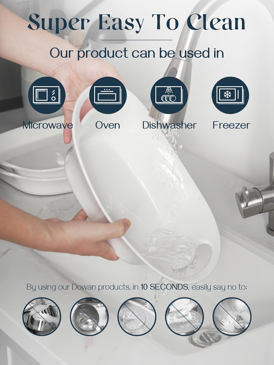 - Durable and Healthy Ceramic Bowls: Dowan bowls for kitchen are made of top quality porcelain, lead-free & cadmium free. These serving bowls for entertaining are strong and safe enough to use in the dishwasher, microwave, freezer, and oven.