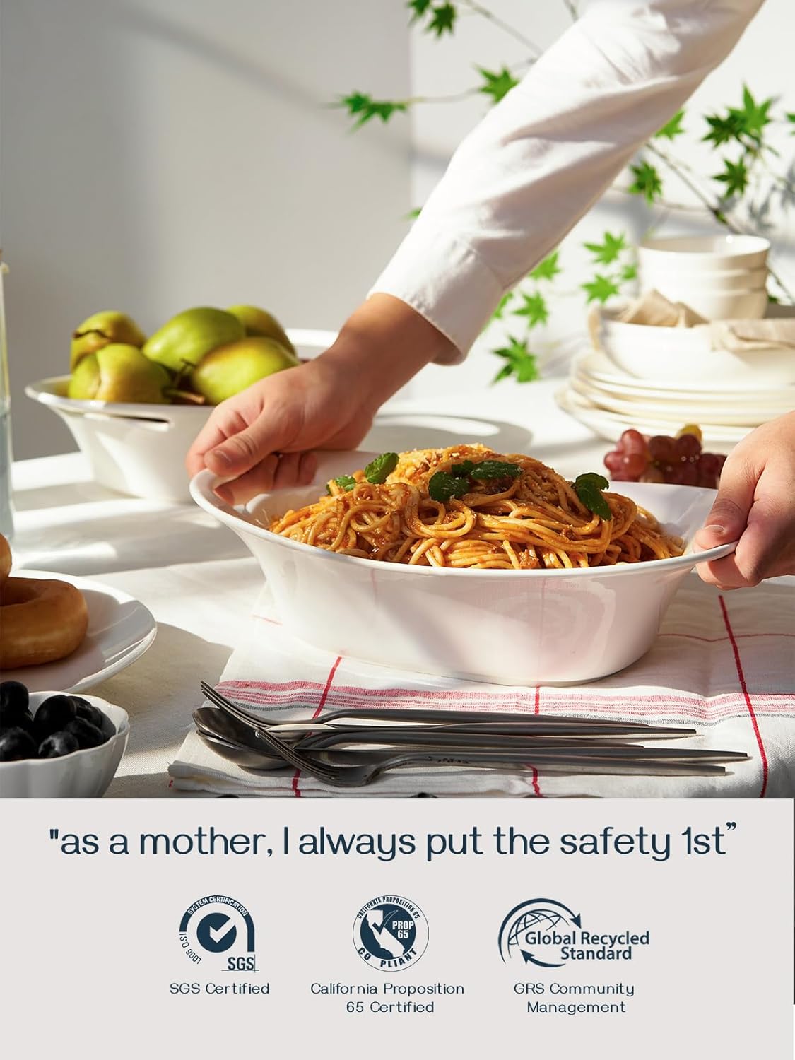 - Large Capacity for Various Foods: large serving bowl 60 oz is perfect for serving hearty soups and dishes, such as stew, salad, pasta, side dishes, fruits and so on. With this serving bowl set, you can enjoy your meal without worrying about spilling foods. Also, our salad bowls are a ideal choice for a party, Mother's Day party, weeknight dinner, wedding, and daily life.
