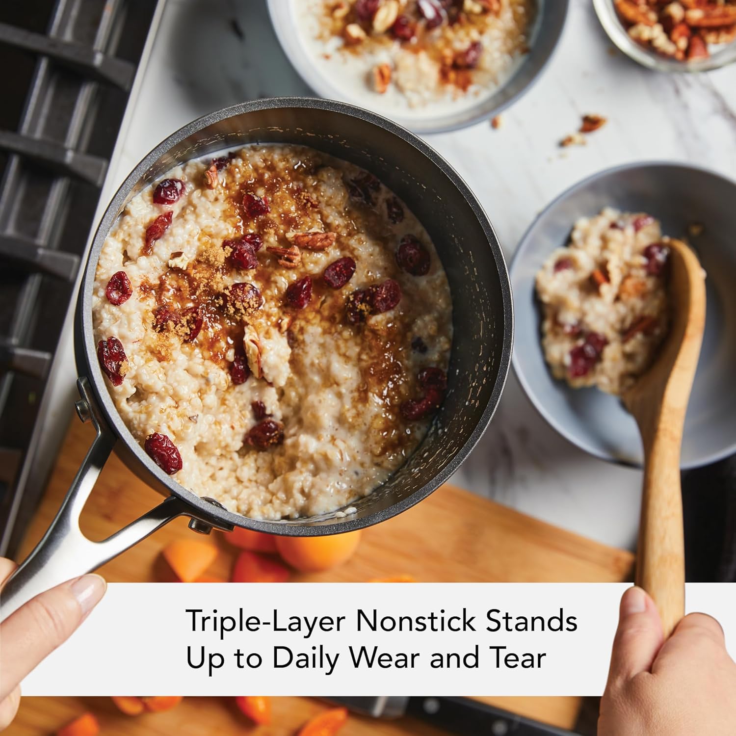 - EVEN, CONSISTENT HEAT: Saucepan is equipped with a thick, forged base designed to heat evenly for experimenting with new recipes and getting beautifully browned results on any stovetop, including induction
