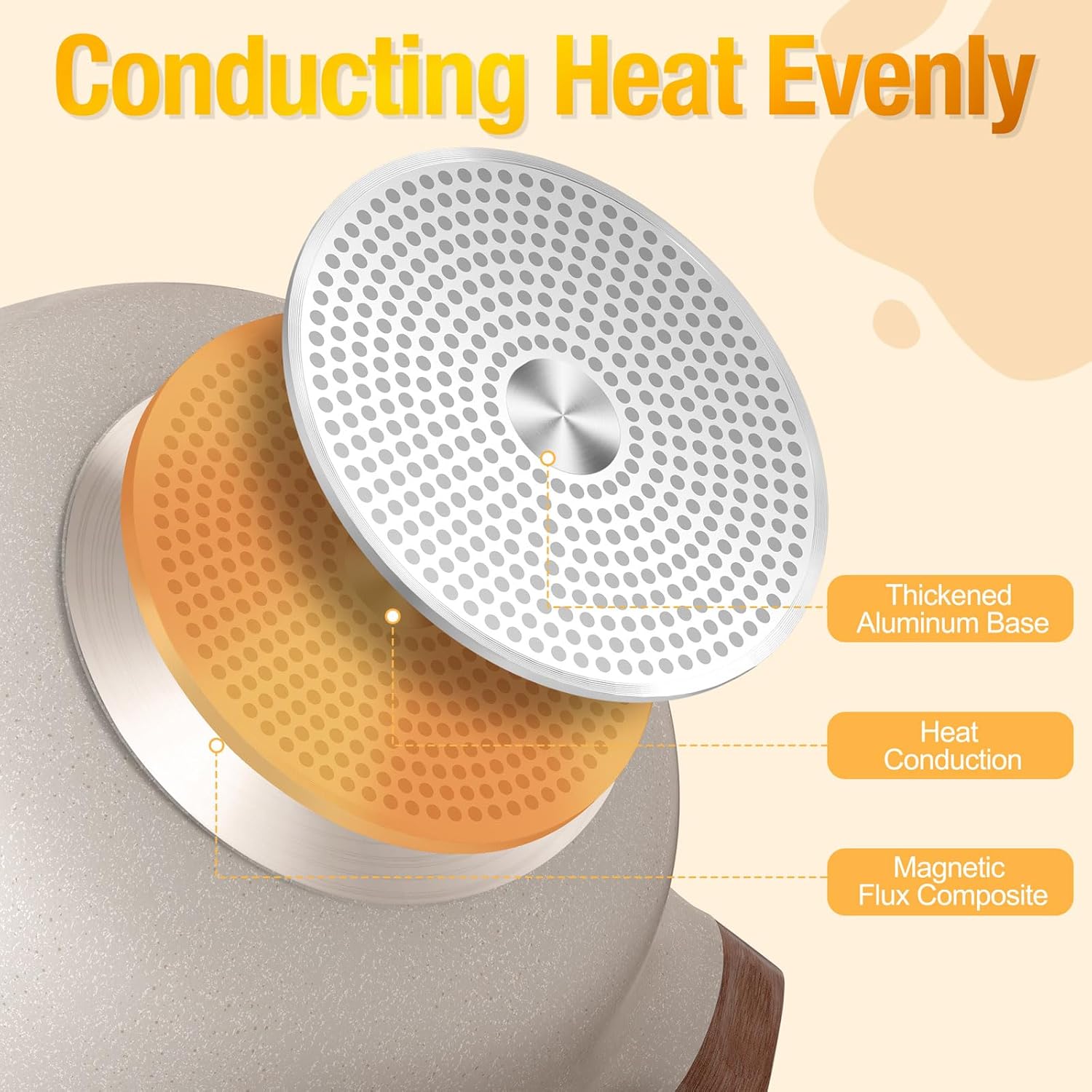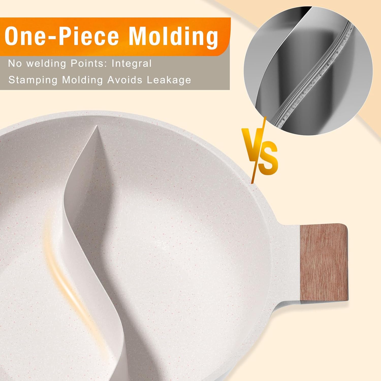 - Non-Stick Coating - Made of high-performance DIE-CAST ALUMINUM heat conductive body, the divided pot not only conducts heat quickly and evenly. With the 100% food-grade scratch-resistant non-stick coating, it also guarantees you cooking little oil for a healthy diet, while it makes cleaning the stockpot an easy way.