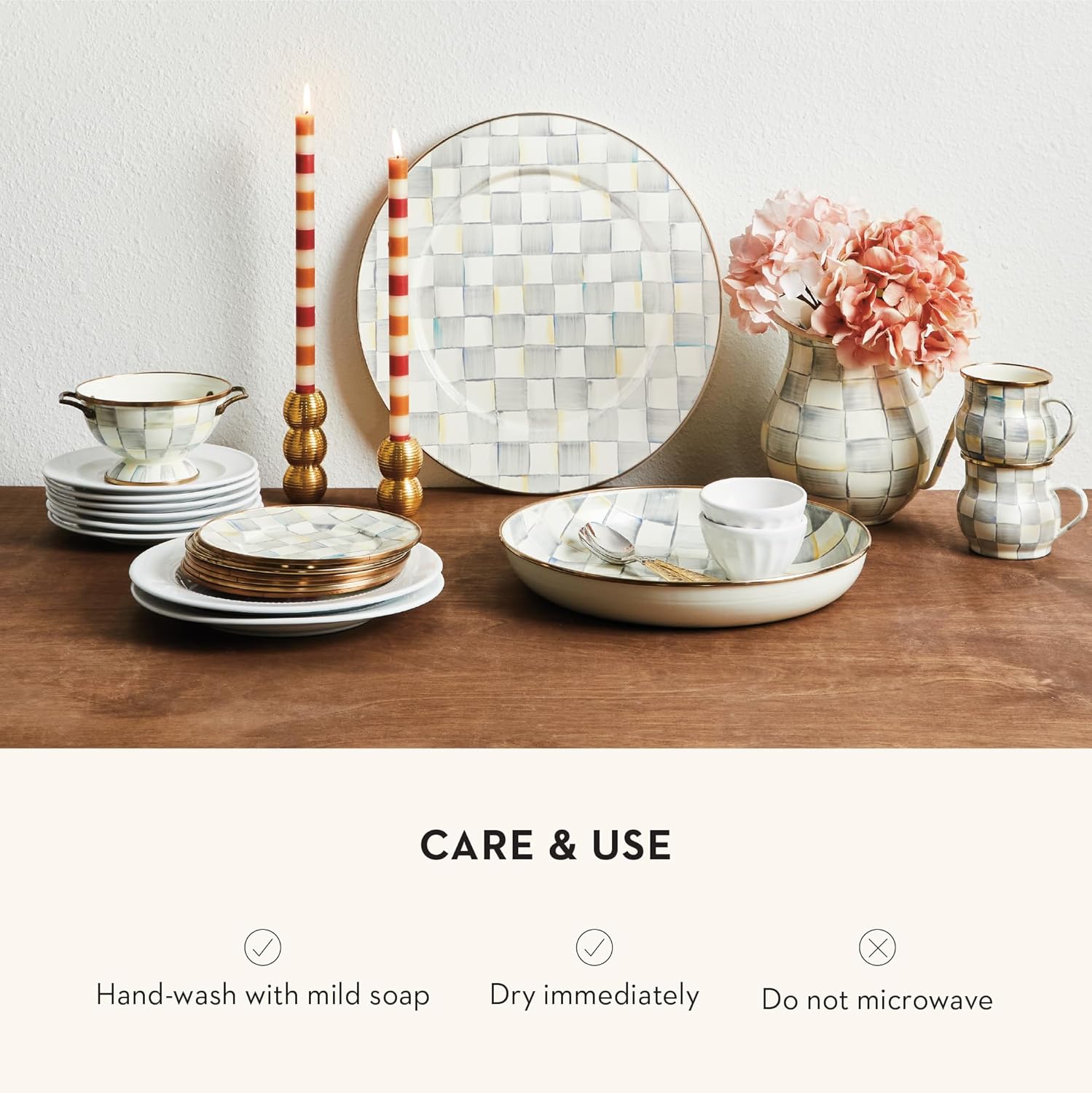 - Material : Heavy-gauge, hand-glazed steel underbody with hand-painted Sterling Checks, rimmed in bronzed stainless steel. Pieces may vary due to the handmade nature of each product. Imported. Heavy-gauge, hand-glazed steel underbody with hand-painted Sterling Checks, rimmed in bronzed stainless steel. Pieces may vary due to the handmade nature of each pro… See more