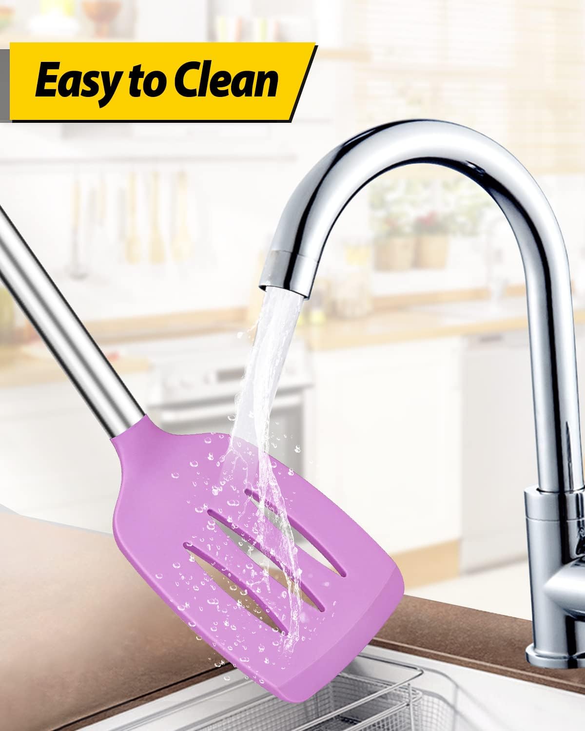 Pack of 2 Silicone Solid Turner, Non Stick Slotted Kitchen Spatulas, High Heat Resistant BPA Free Cooking Utensils, Ideal Cookware for Fish, Eggs, Pancakes(Purple)