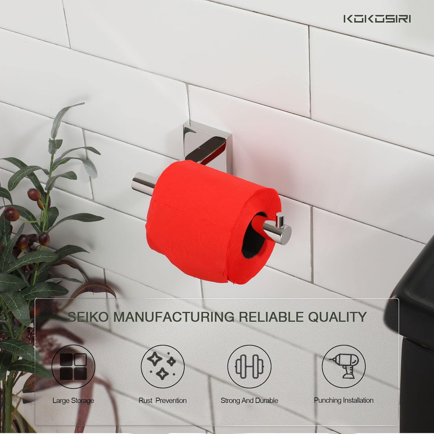 - ◄ Rustproof ► KOKOSIRI toilet paper holder made of SUS 304 Stainless Steel (premium stainless steel). All metal design and used of high-grade steel which can resist rust and corrosion.