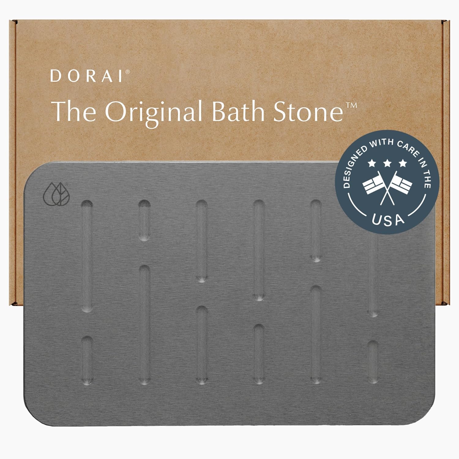 - THE ORIGINAL BATH STONE: Dorai Bath Stones dry quickly after use, eliminating moisture buildup and bad smells, while feeling smooth and dry under your feet. Its slip-proof surface has plenty of grooves to catch water, and its rubberized bottom pad grips any floor while allowing 360-degree drying.