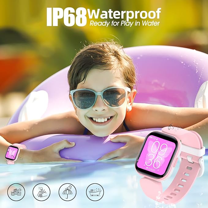 - 【Great Gift for Kids Boys Girls Teens】Kids waterproof smart watch has a fashion and cute design. 1.4-inch colorful touch screen can adjust brightness, and the display screen will automatically light up when you raise wrist. it has many fun and useful functions, This will be a great Birthday, New year, Christmas gift for kids, boys girls teens.