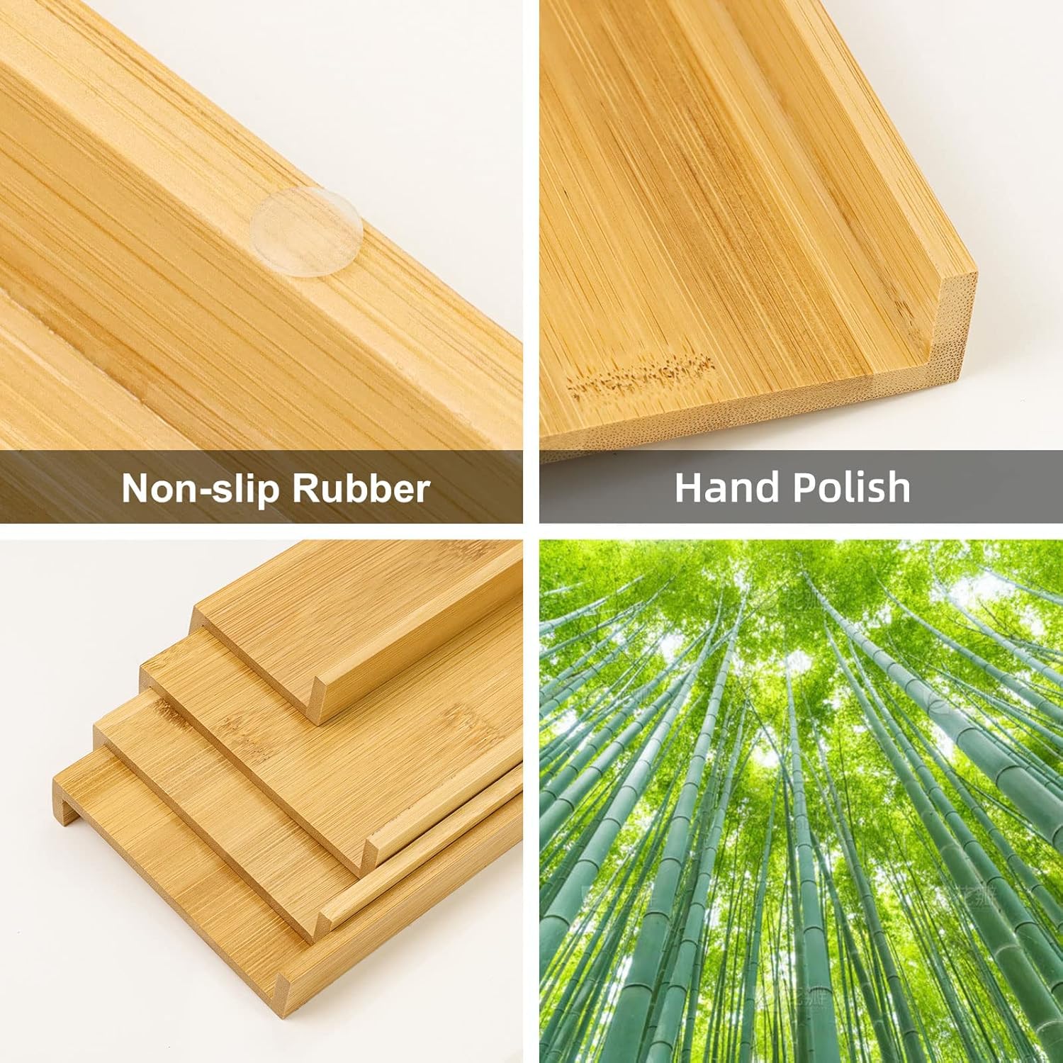 - Space Efficient Design: 4-tier bamboo rack system perfectly fits into kitchen drawers, cabinets, or countertops with dimensions of 13 inches wide by 15.8 inches deep