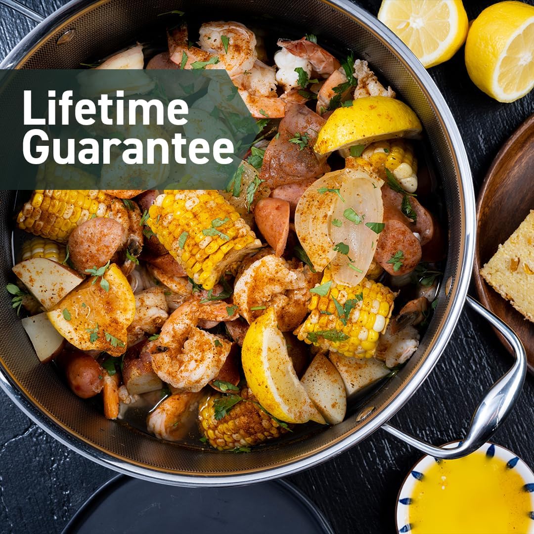 HexClad Hybrid Nonstick 10-Quart Stockpot with Tempered Glass Lid, Stay-Cool Handles, Dishwasher-Friendly, Oven-Safe Up to 900°F, Induction Ready, Compatible with All Cooktops