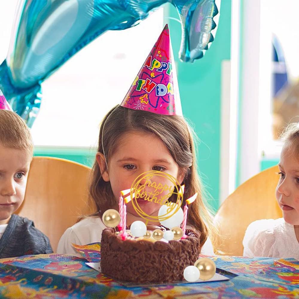 BEISHIDA-Cake Topper Gold 27 Pack Cupcake Topper with Mini Balls, Happy Birthday Acrylic Toppers Insert Pick DIY for Cake Decorations Anniversary Wedding Baby Shower Party (Gold/White)