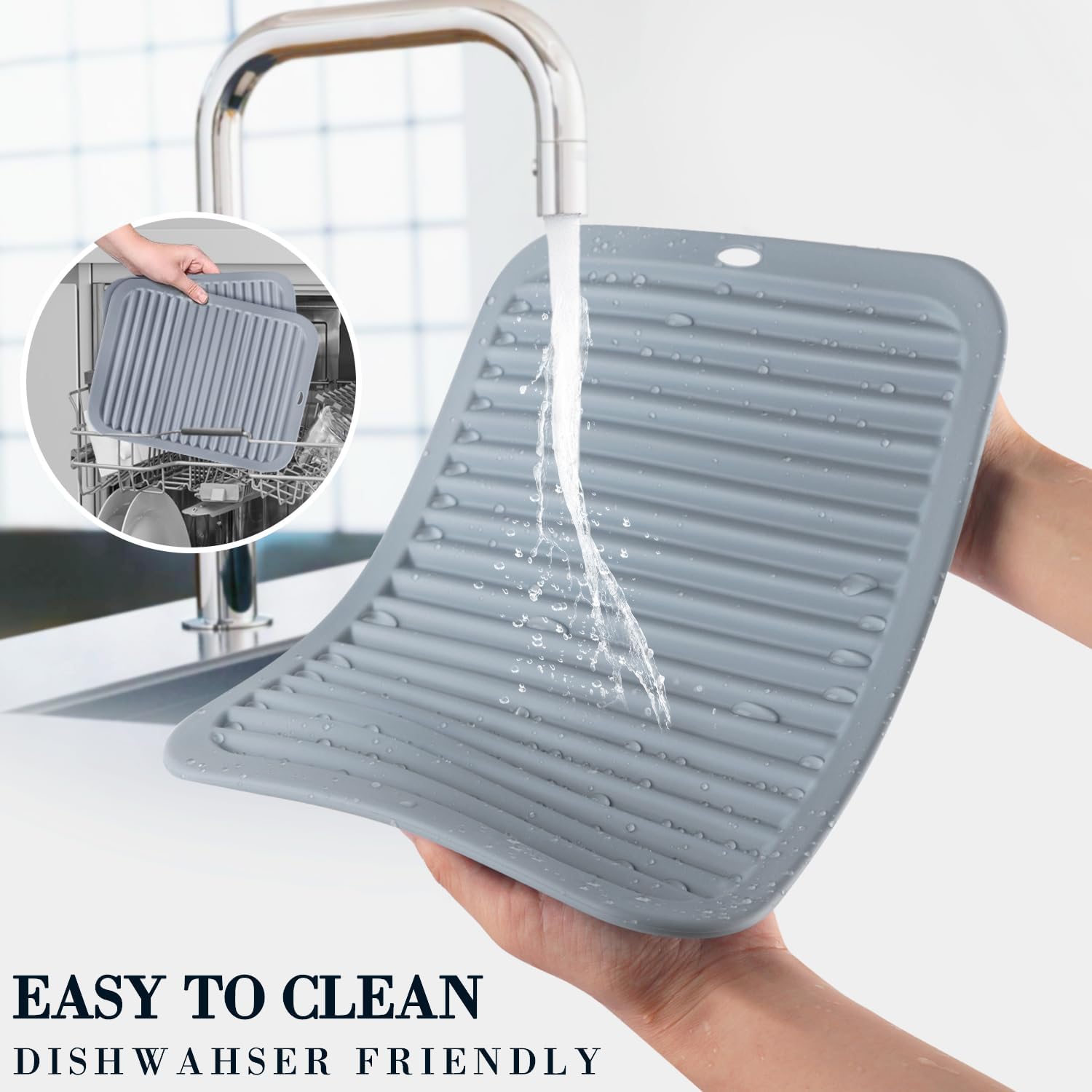 - 🍳【EASY TO CLEAN & STORE】: The grey silicone pot holders for kitchen are easy to clean, wipeable, and dishwasher safe. Almost everything can be easily washed off from surfaces and dry quickly. Roll up or hang it on a hook; save valued kitchen space!