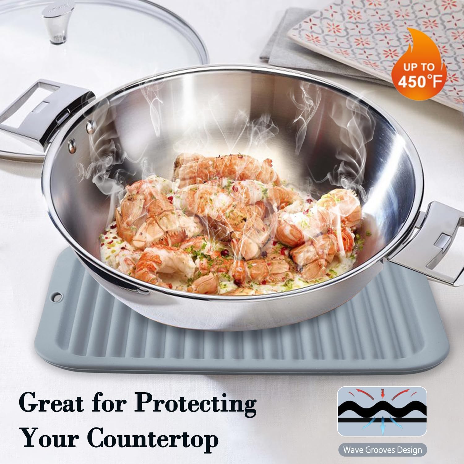- 🍳【PERFECT WAVY DESIGN】: The unique & non-slip wave grooves effectively protect the kitchen counter, and catch the spill, which helps keep countertops clean and dry. Thick silicone hot pads provide good heat insulation; these are a practical gift to any kitchen lover.