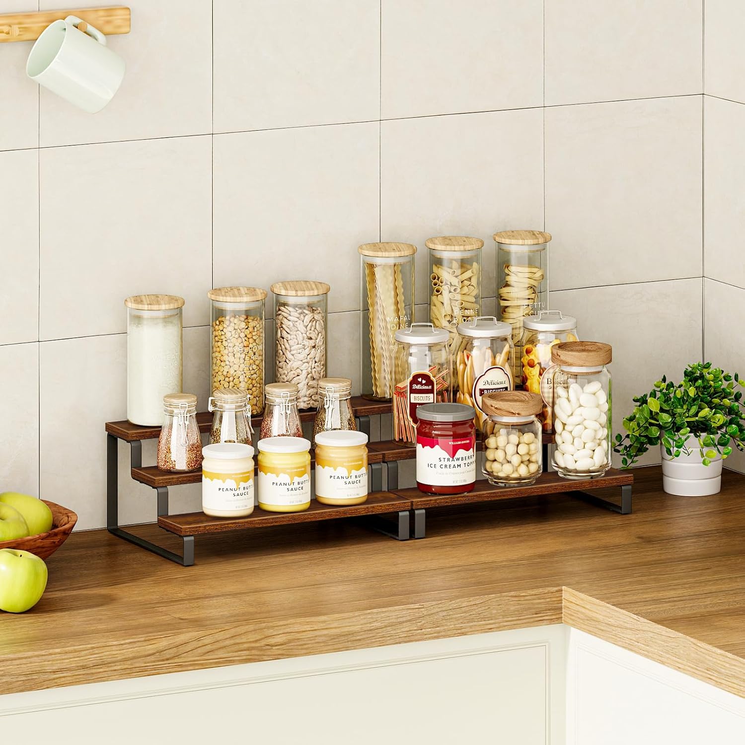 - Quick Setup & Easy Cleaning: With detailed instructions and tools provided, you can have this 3-tier spice rack assembled in 10 minutes. The wooden surface is waterproof and dust free, a damp cloth could keep the spice rack clean.